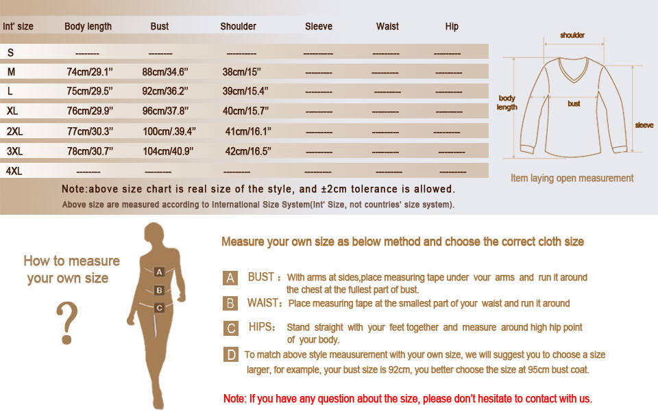 Real measurement of the style (the same as above chart 1, for non-English Countries), please always buy the goods according to the below and your real body size