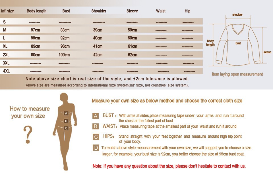 Real measurement of the style (the same as above chart 1, for non-English Countries), please always buy the goods according to the below and your real body size.