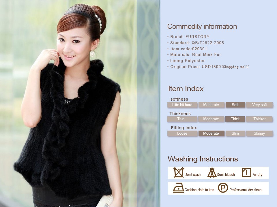 Natural Mink Fur Vest Female Flounce Decoration Placket Design Sleeveless Women's Mink Vest