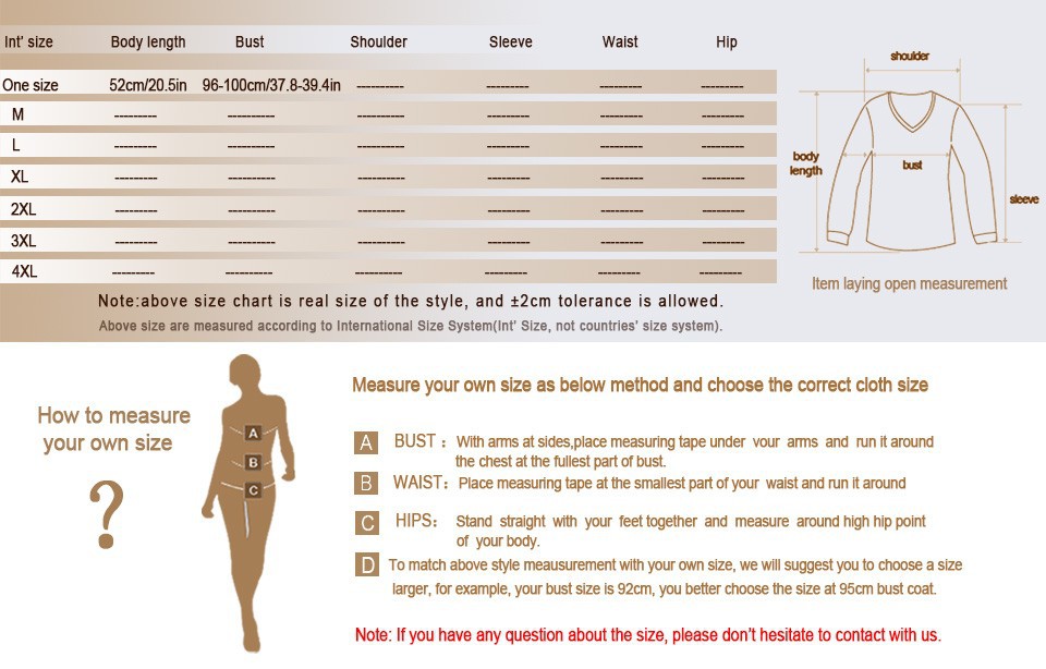 Real measurement of the style (the same as above chart 1, for non-English Countries), please always buy the goods according to the below and your real body size.
