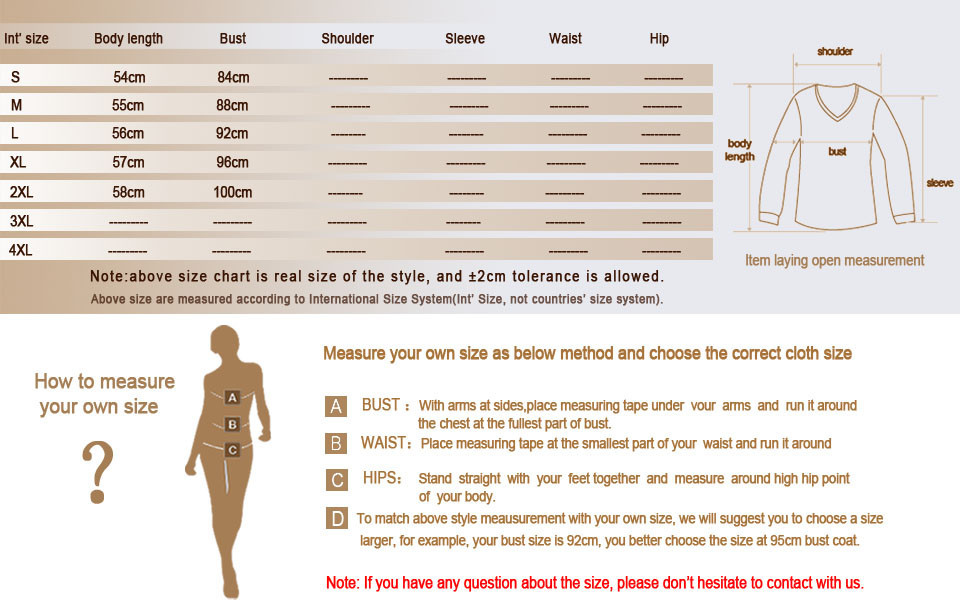 Real measurement of the style (the same as above chart 1, for non-English Countries), please always buy the goods according to the below and your real body size.
