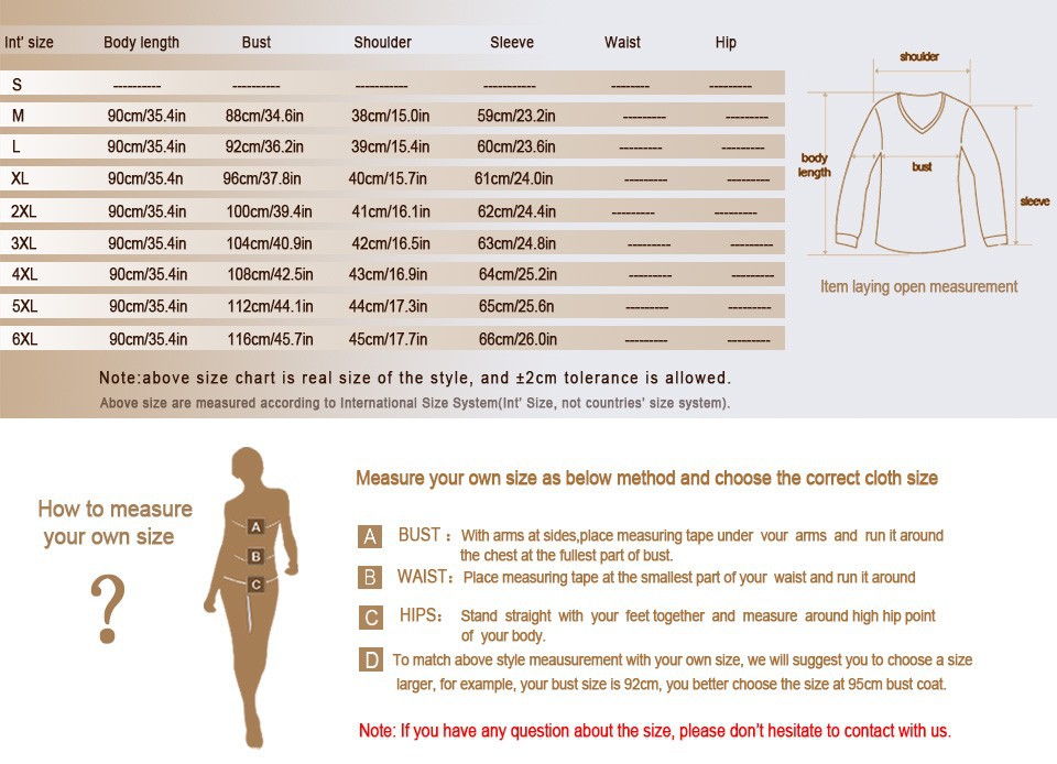 Real measurement of the style (the same as above chart 1, for non-English Countries), please always buy the goods according to the below and your real body size.