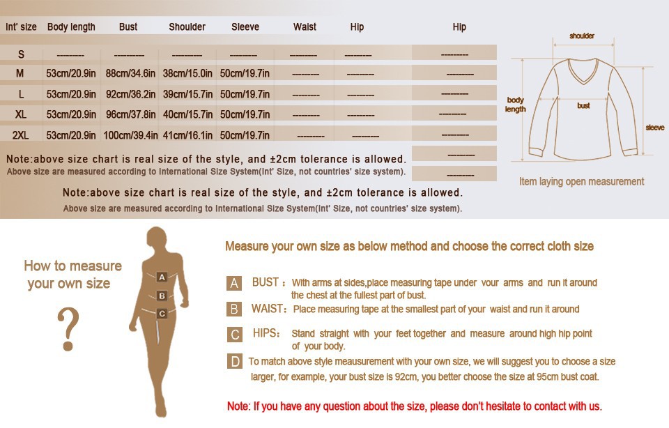 Real measurement of the style (the same as above chart 1, for non-English Countries), please always buy the goods according to the below and your real body size.