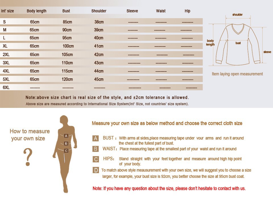 Real measurement of the style (the same as above chart 1, for non-English Countries), please always buy the goods according to the below and your real body size.