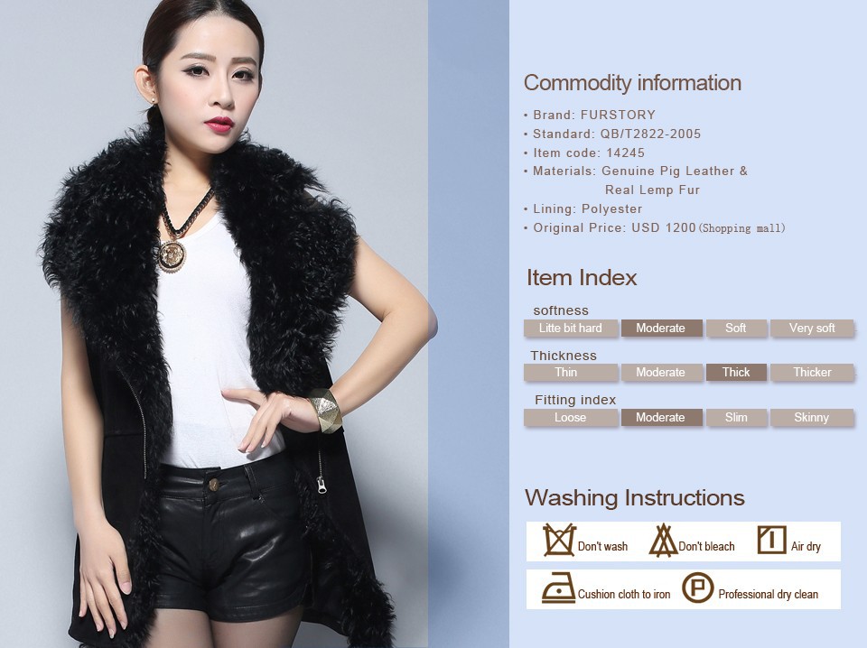 Genuine Pig Leather Suede Women's Vest  with Real Lamb Fur Collar