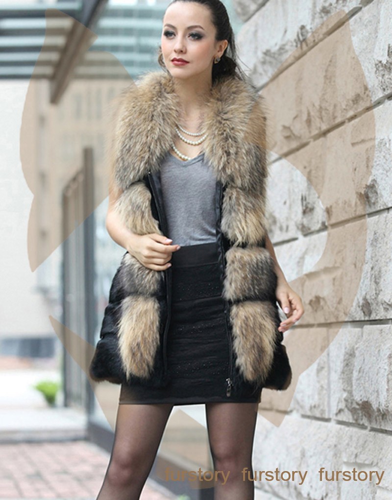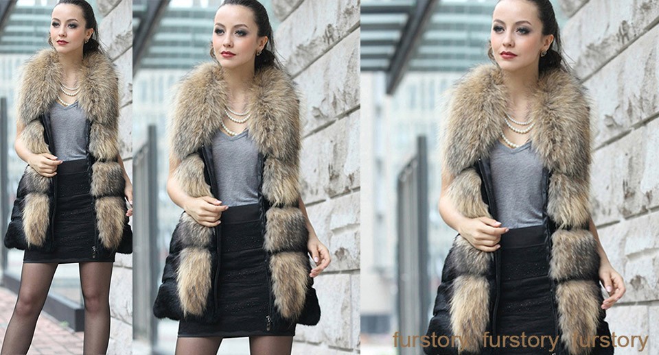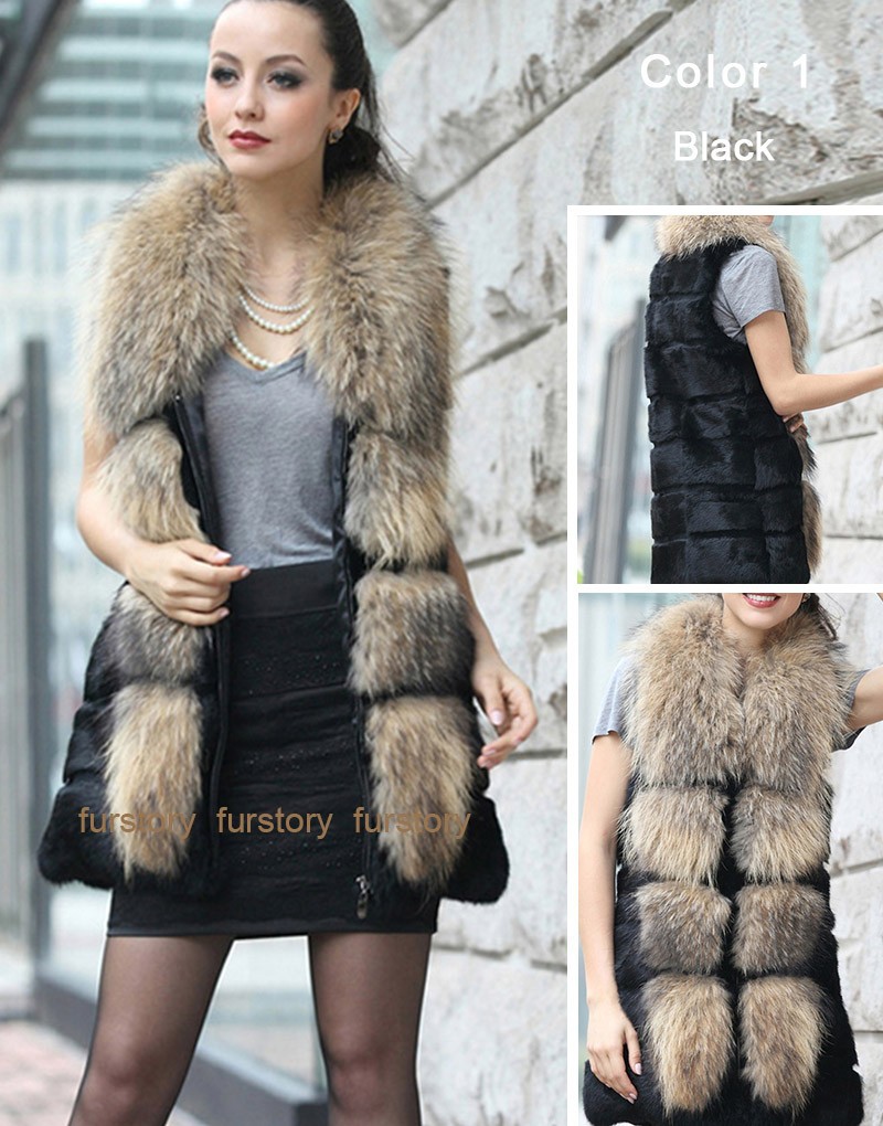 Fur Story 15274 Hot 2016 新到货 真毛保证 女式大貉领天然毛皮马甲兔毛背心