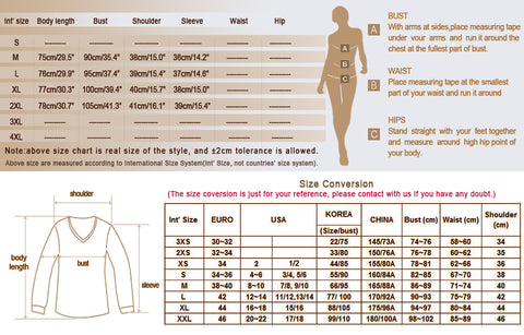 2) To match above Style measurement with your own size, we will suggest you to choose a szie larger, for example, if your bust size is 92cm, you better choose the style size at 96cm bust.