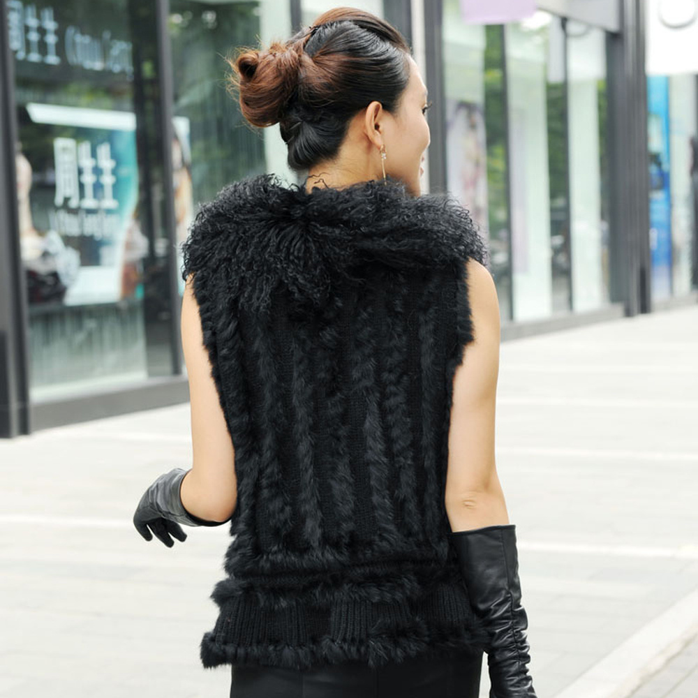 Natural Rabbit Fur Vest with Lamb Wool Fur Collar Hand Knit Vest Coat Jacket Shawl 6colors