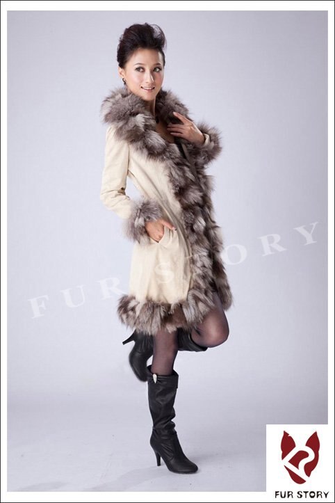 Material: Genuine leather + fox fur collar ,cuff and hem
