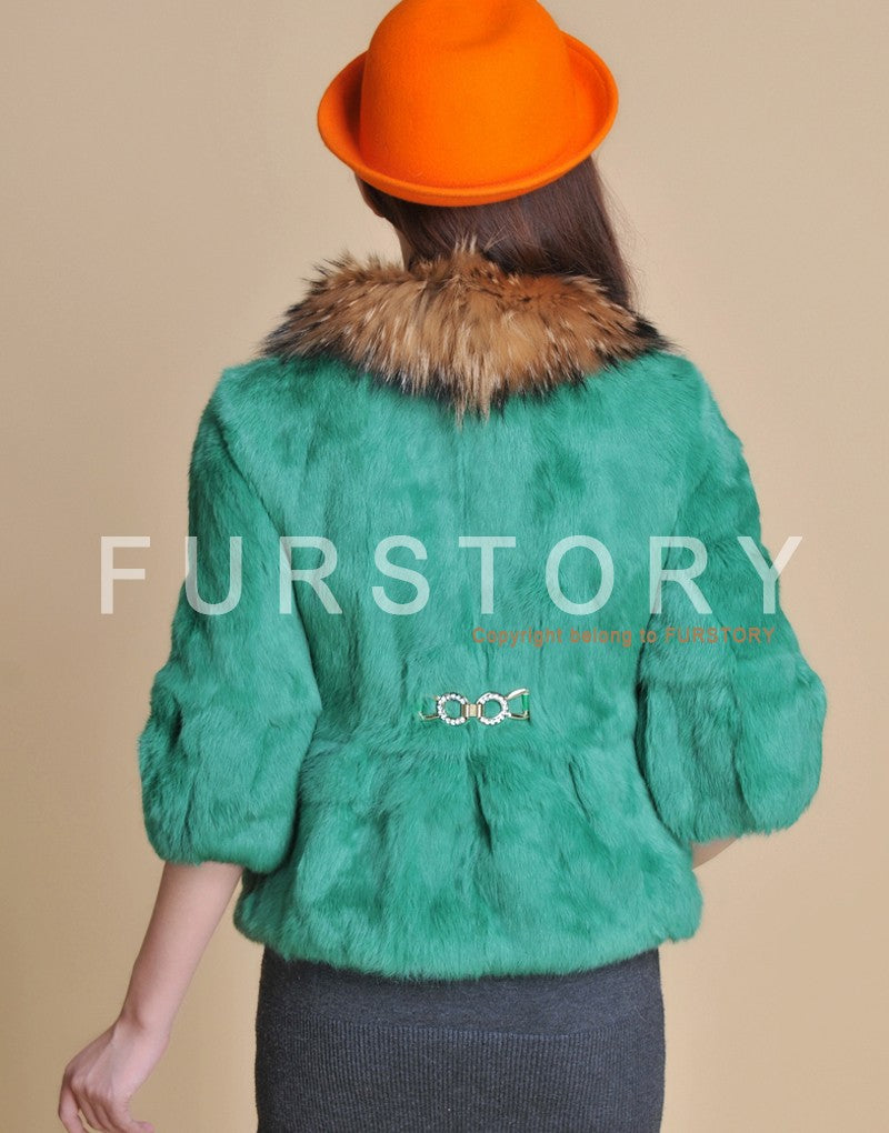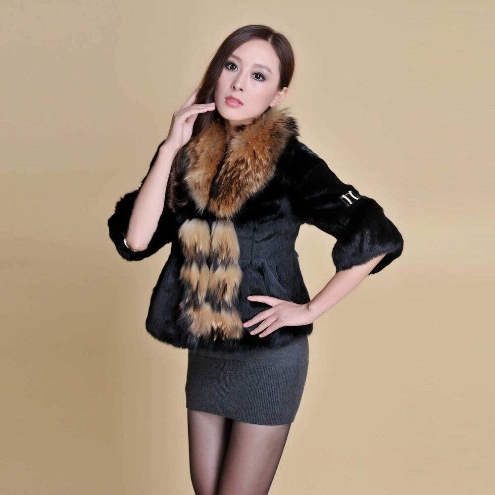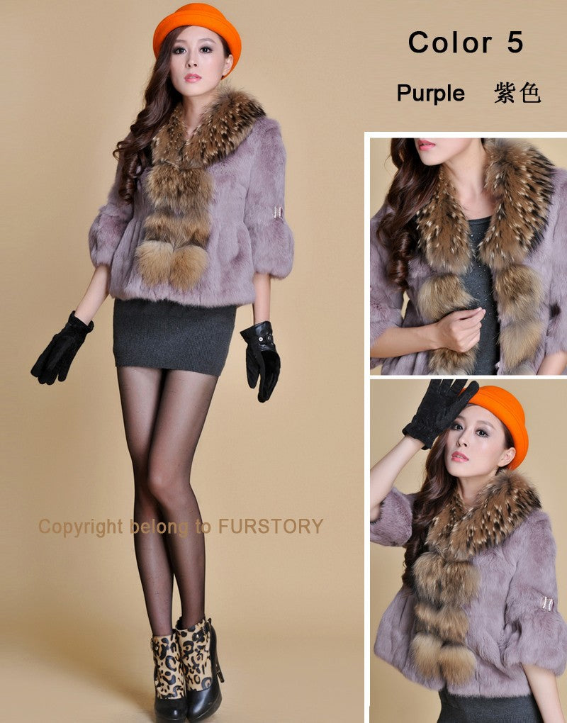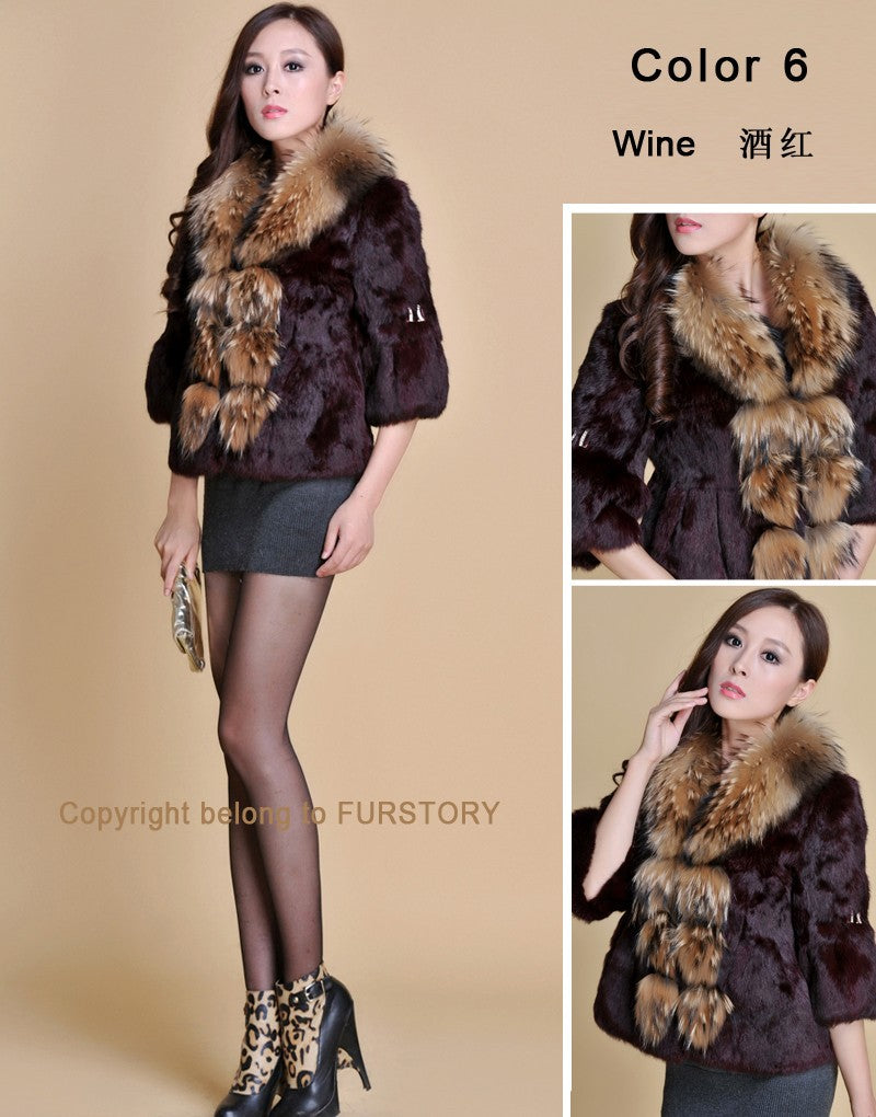 Real Rabbit Fur Coat Raccoondog Fur Collar with Hood Overcoat Jacket Waistcoat 7colors Short Version FS13073