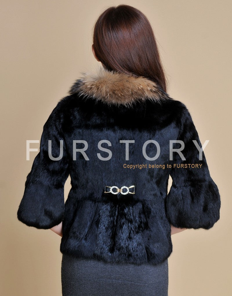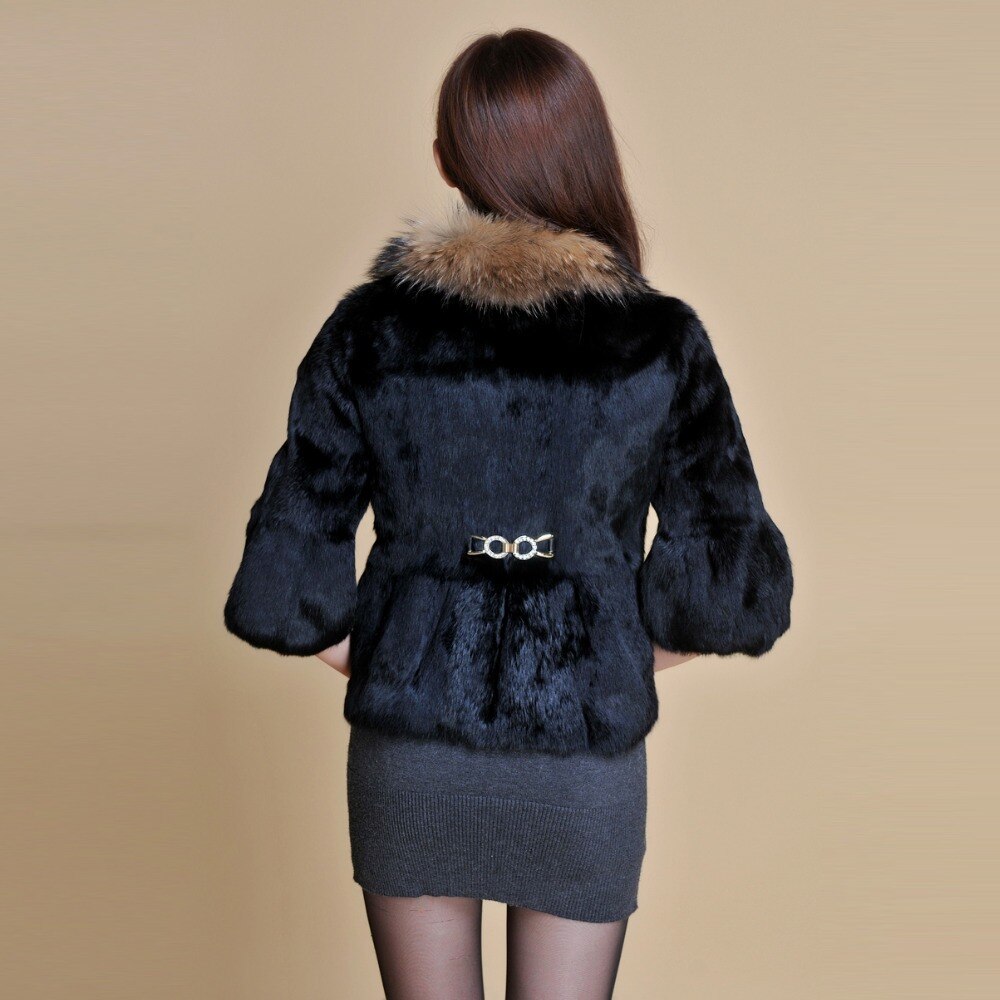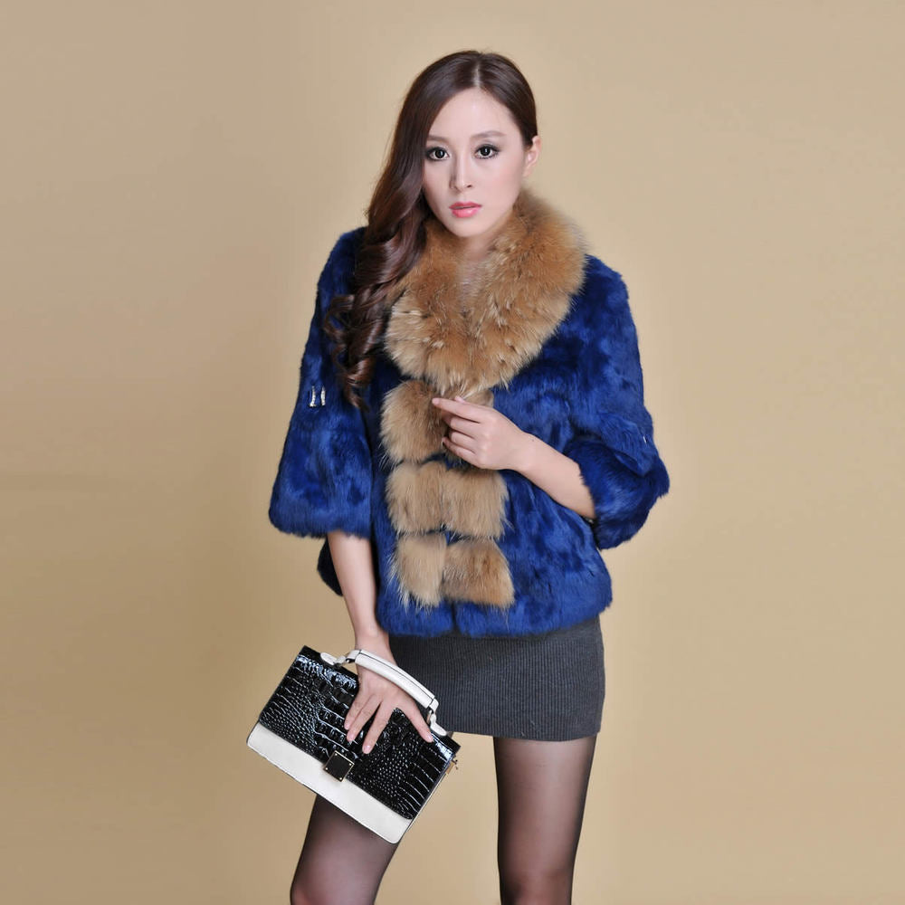 Real Rabbit Fur Coat Raccoondog Fur Collar with Hood Overcoat Jacket Waistcoat 7colors Short Version FS13073