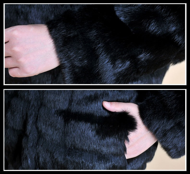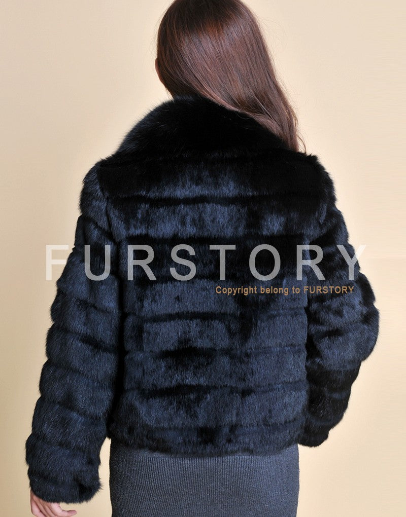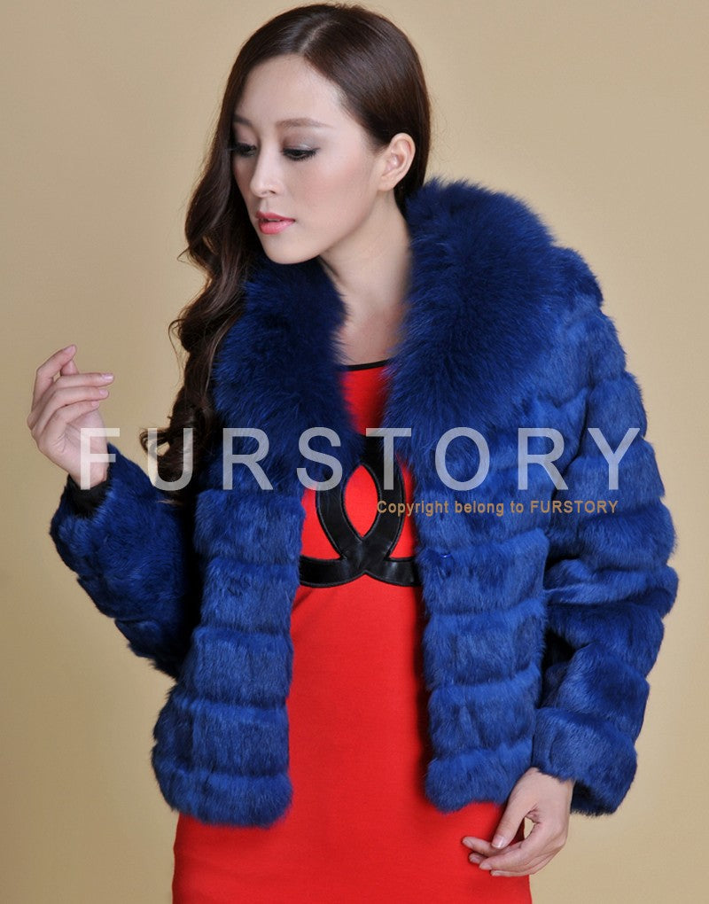 Real Rabbit Fur Coat Fox Fur Collar and Cuff Jacket Overcoat Womens' Garment Winter Coat FS13074