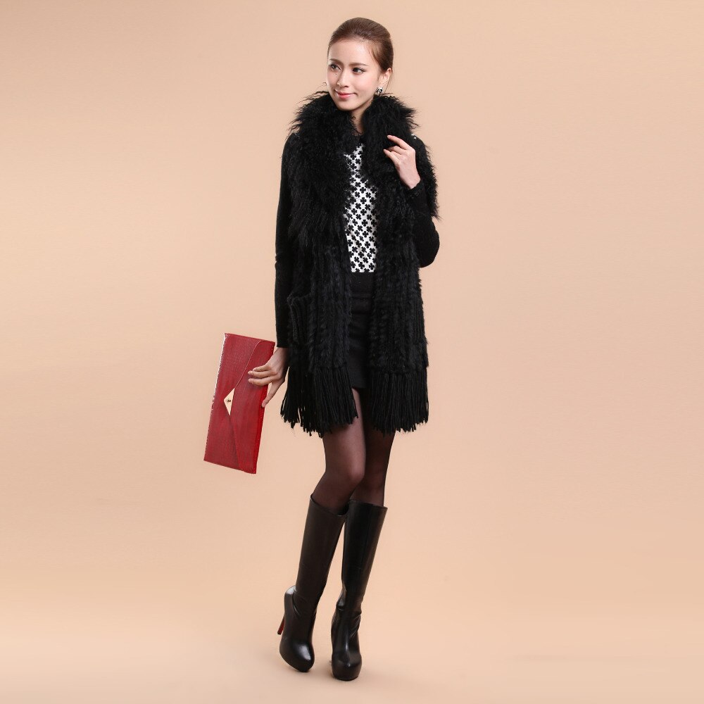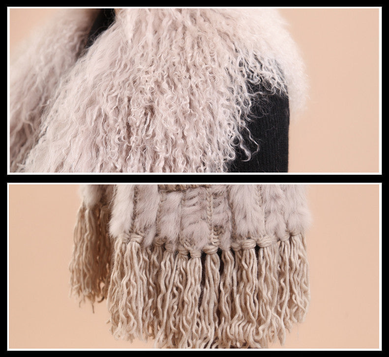Natural Knitted Rabbit Fur Vestmongolian Lamb Fur Collar Long Vest