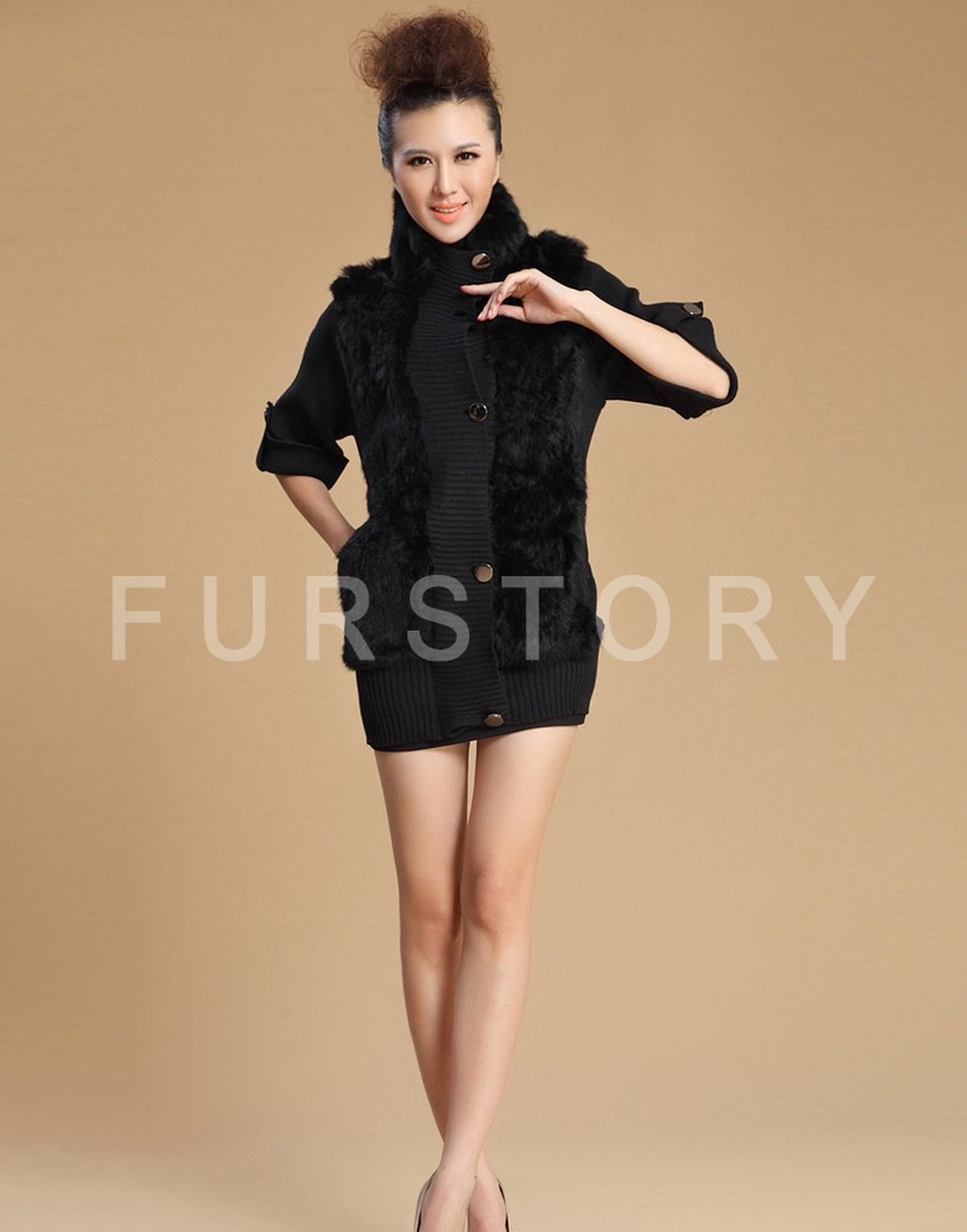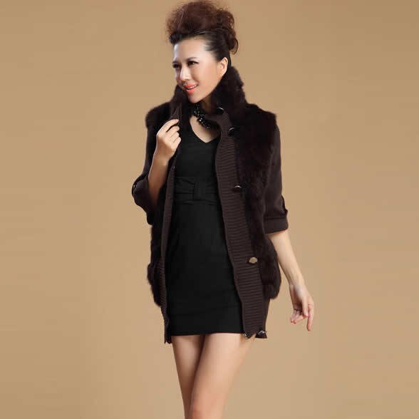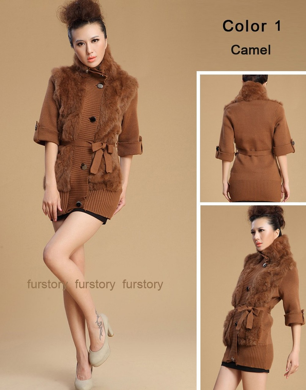 Natural Rabbit Fur Coat Jacket Overcoat Fur Coat Women