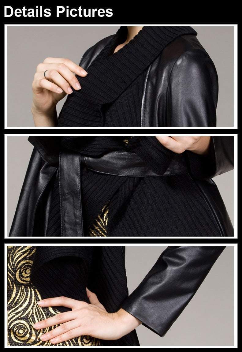 Genuine sheep Leather coat wool blends collar real lamb leather jacket winter overcoat