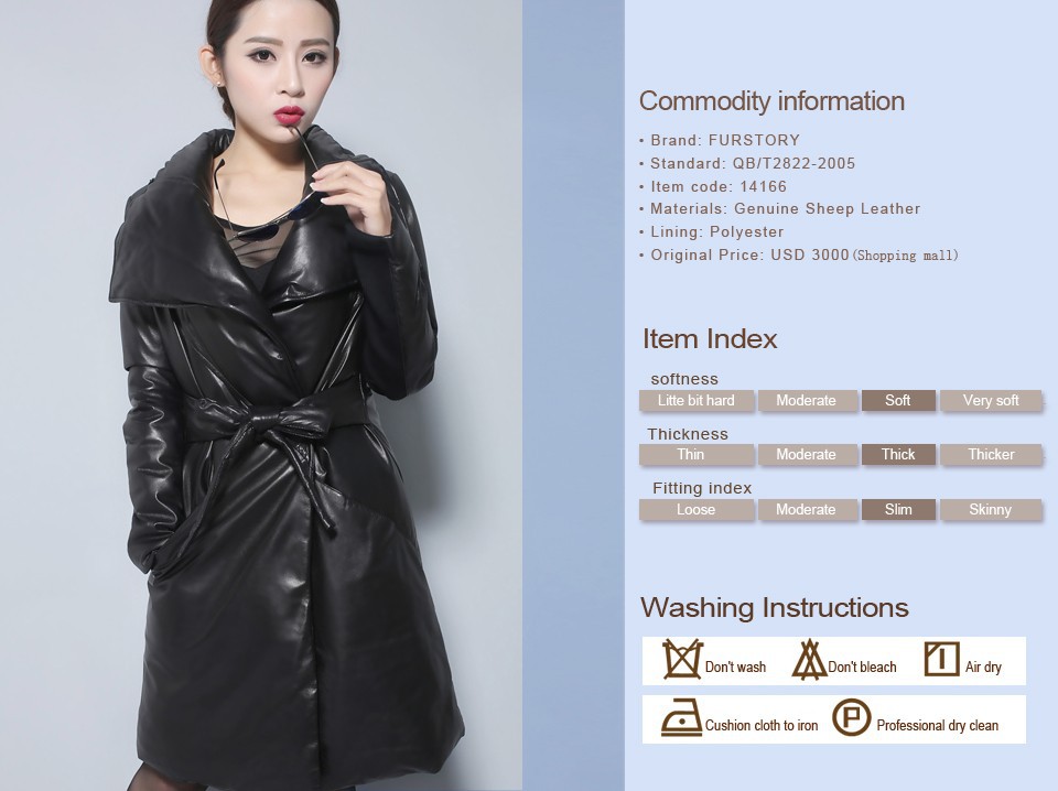 Genuine Sheep Leather Coat Down Overcoat Top Grade Leather Jacket