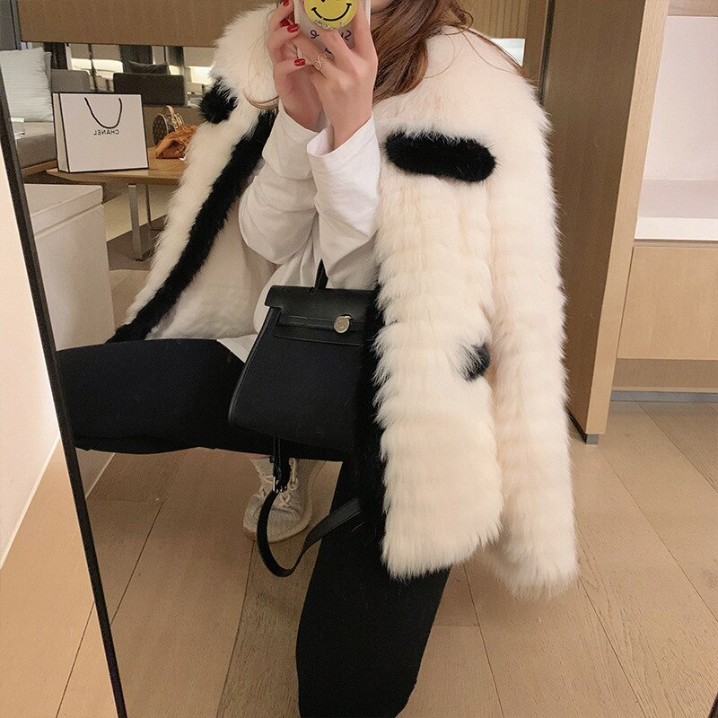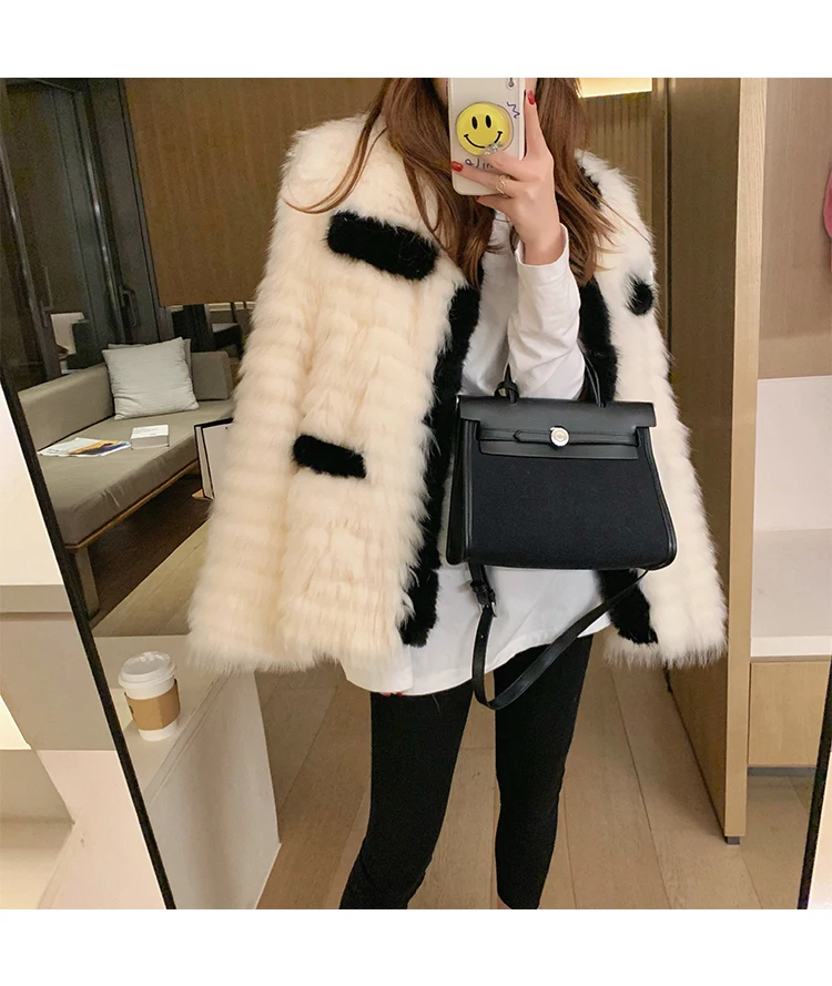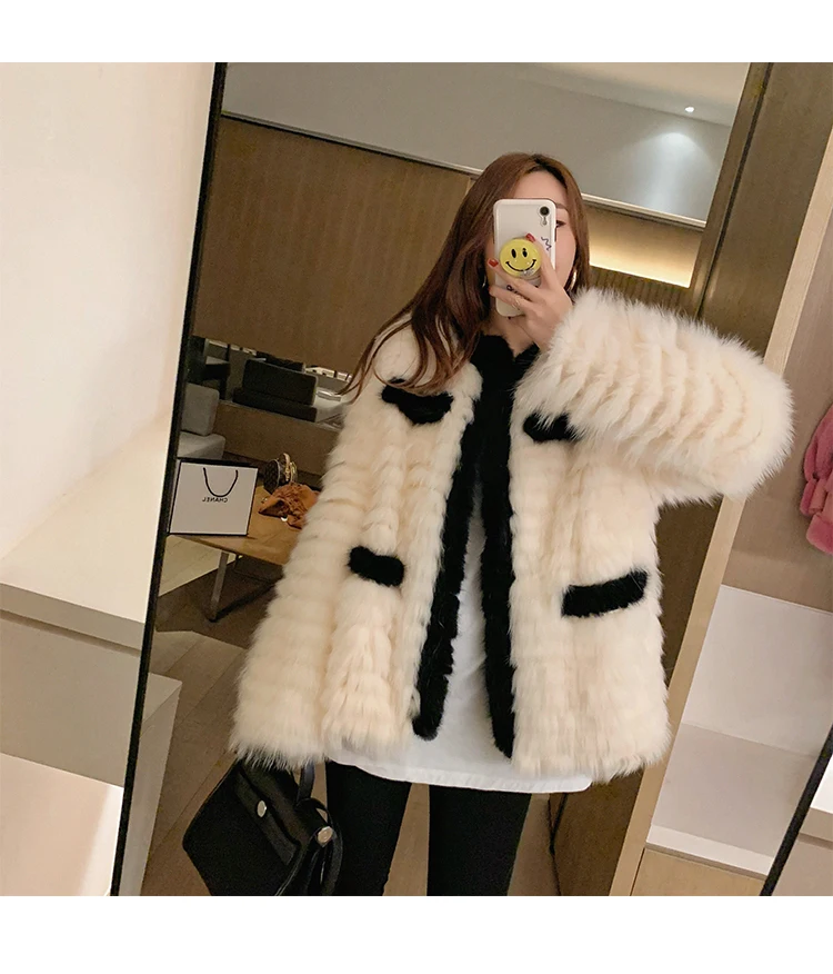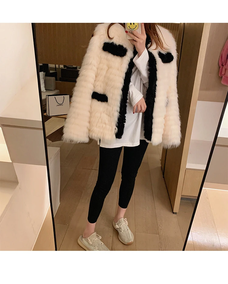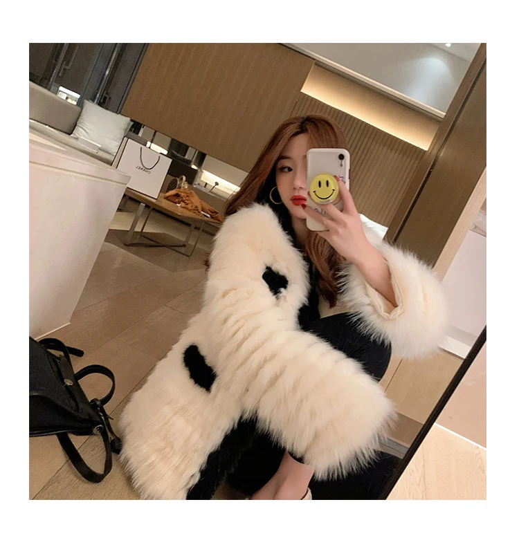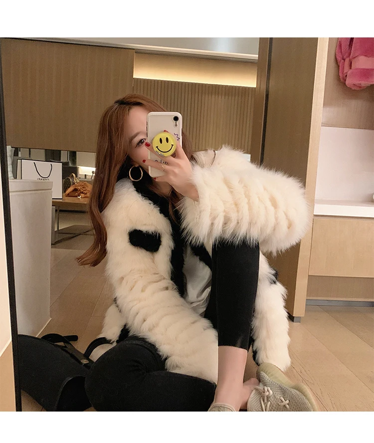 FS21122 Fur Coat Autumn and Winter 2021 New Car Stripe Fox Fur Grass Coat for Young Women
