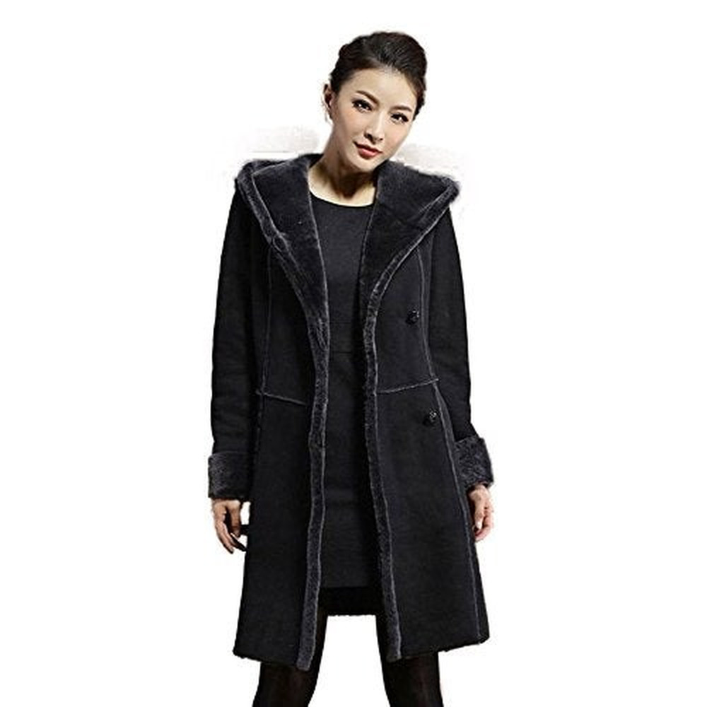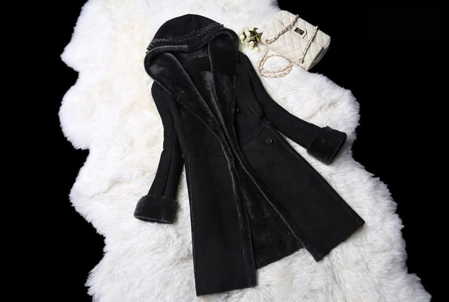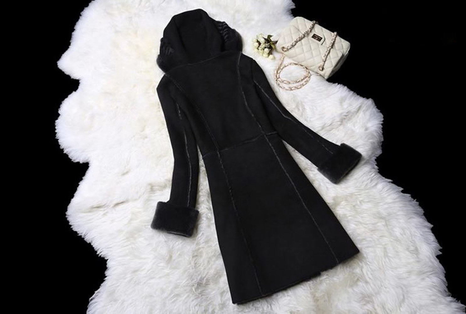 Women's Natural Long Lamb Fur Coat Double Faced Fur Coat with Fur Hood