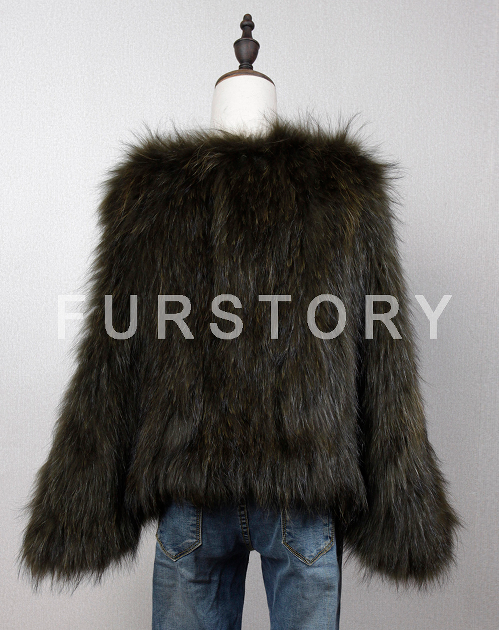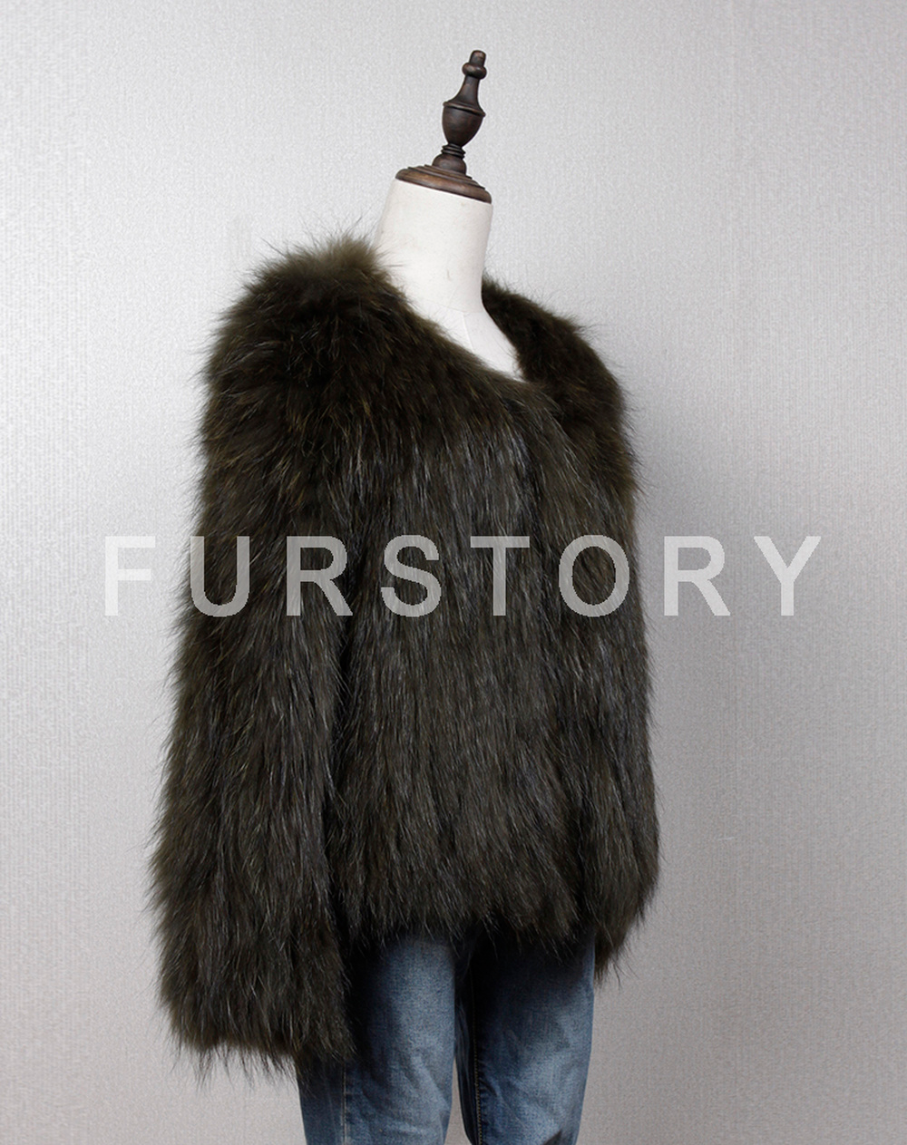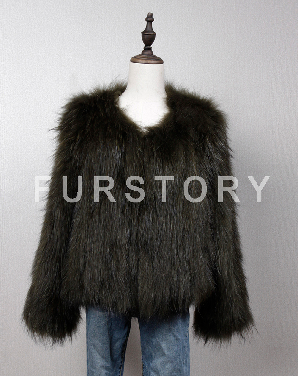 Fur Story 14128 NEW 100% knitted real raccoon fur coat winter jacket overcoat long sleeve version puff thick women dress