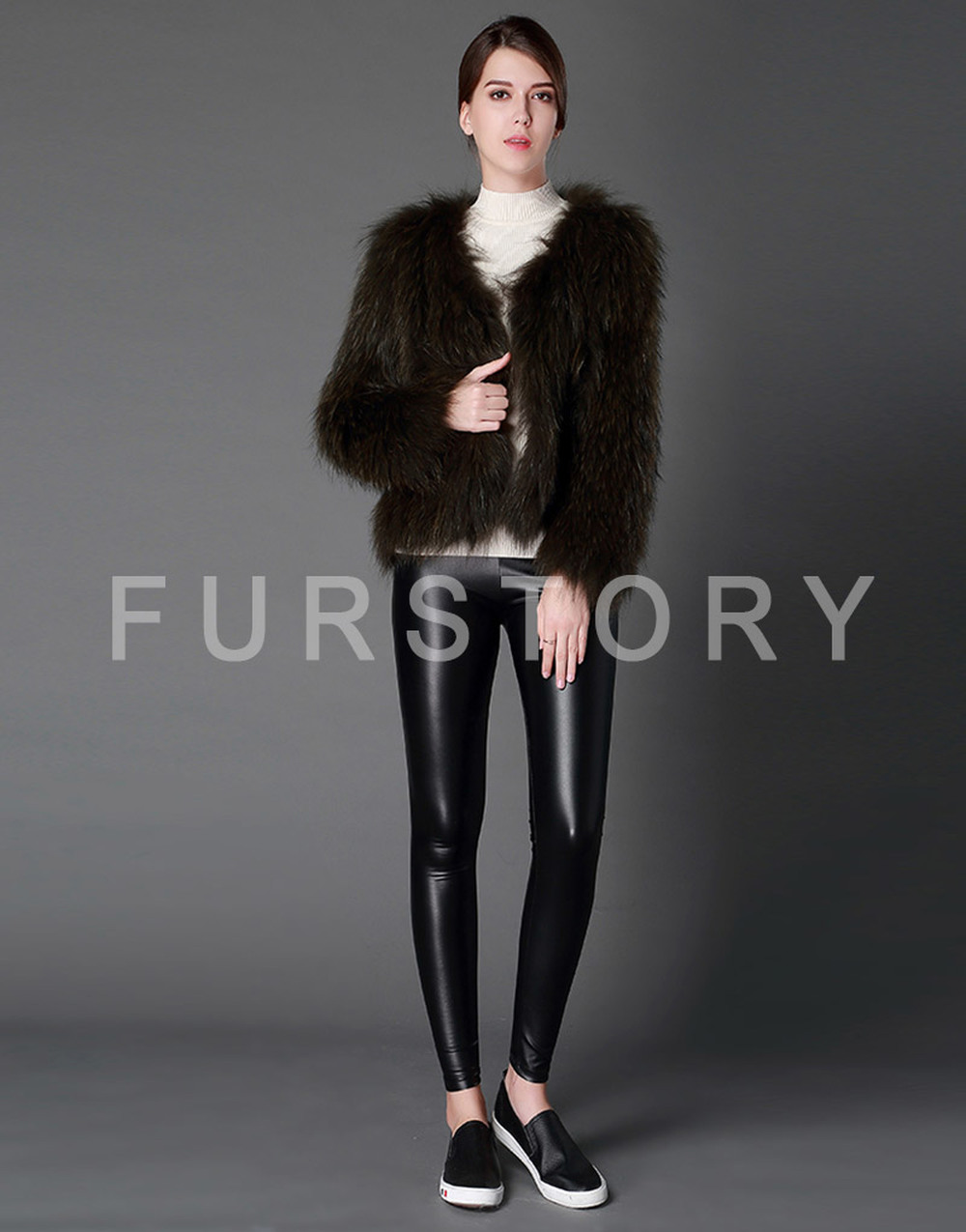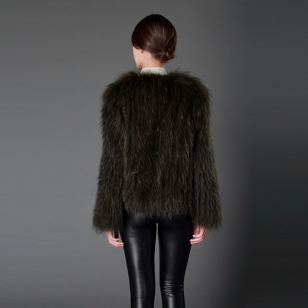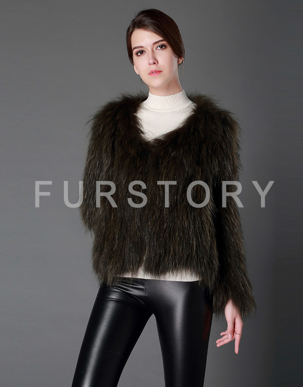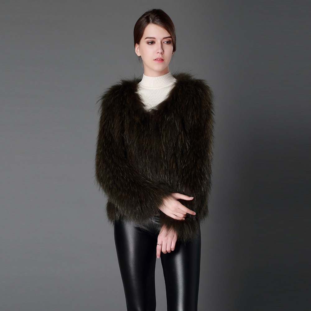 Fur Story 14128 NEW 100% knitted real raccoon fur coat winter jacket overcoat long sleeve version puff thick women dress