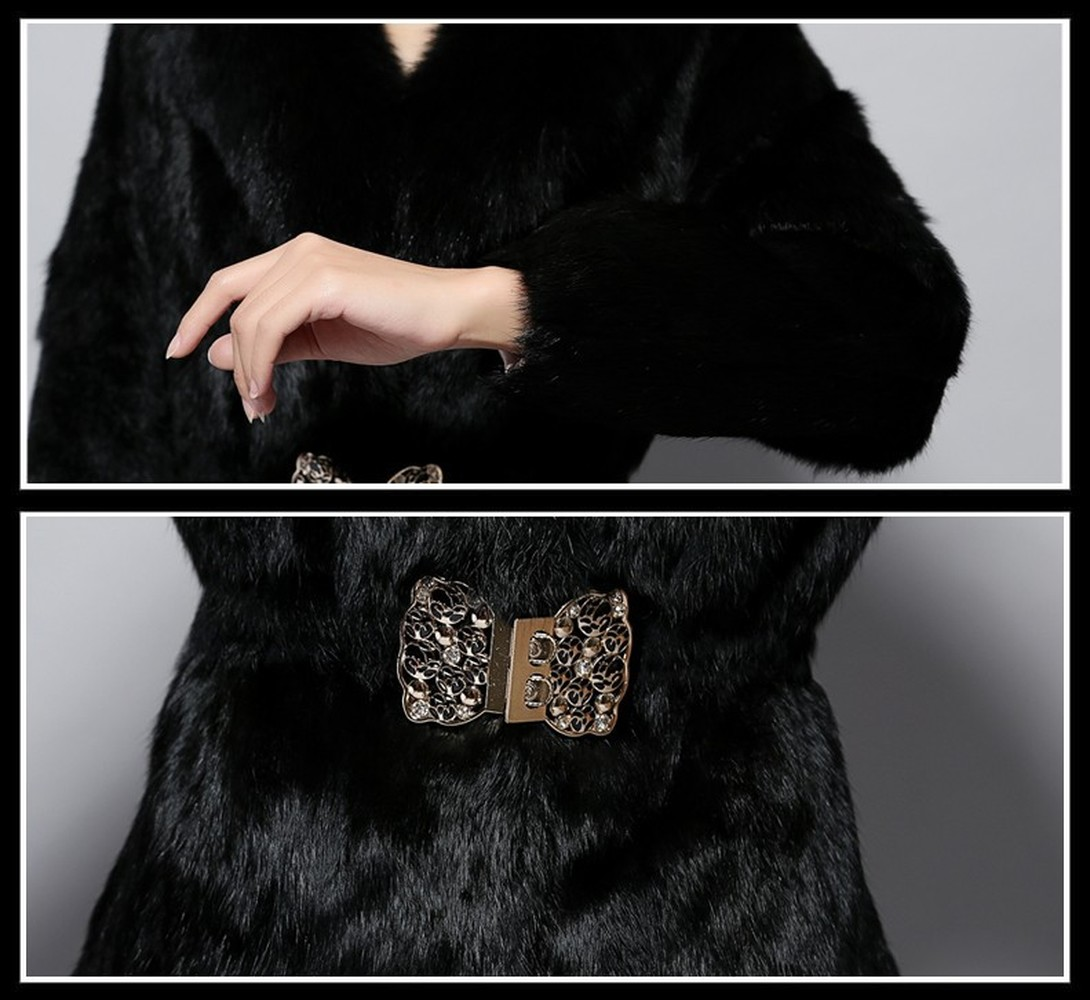 Women's Rabbit Fur Coat Luxury Buckle Slim Waist Real Fur Coat Female Winter Fox Fur Collar Jackets