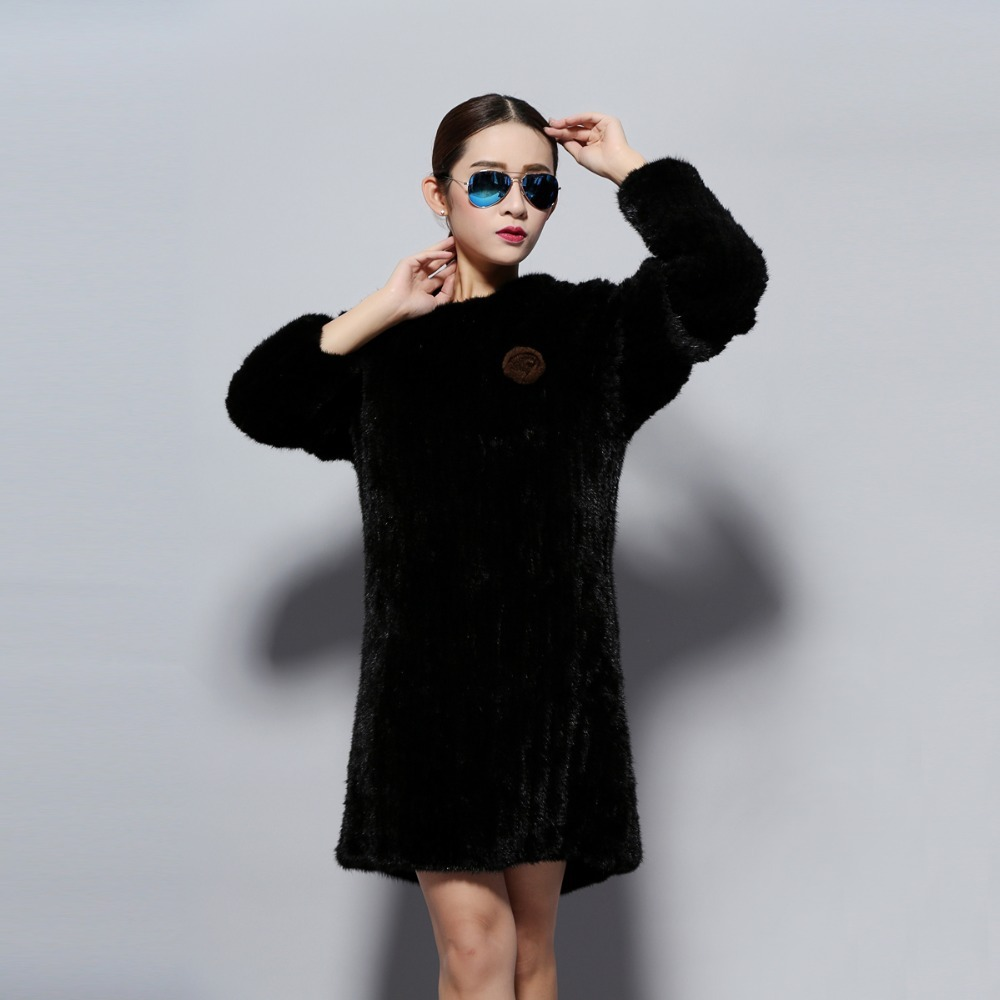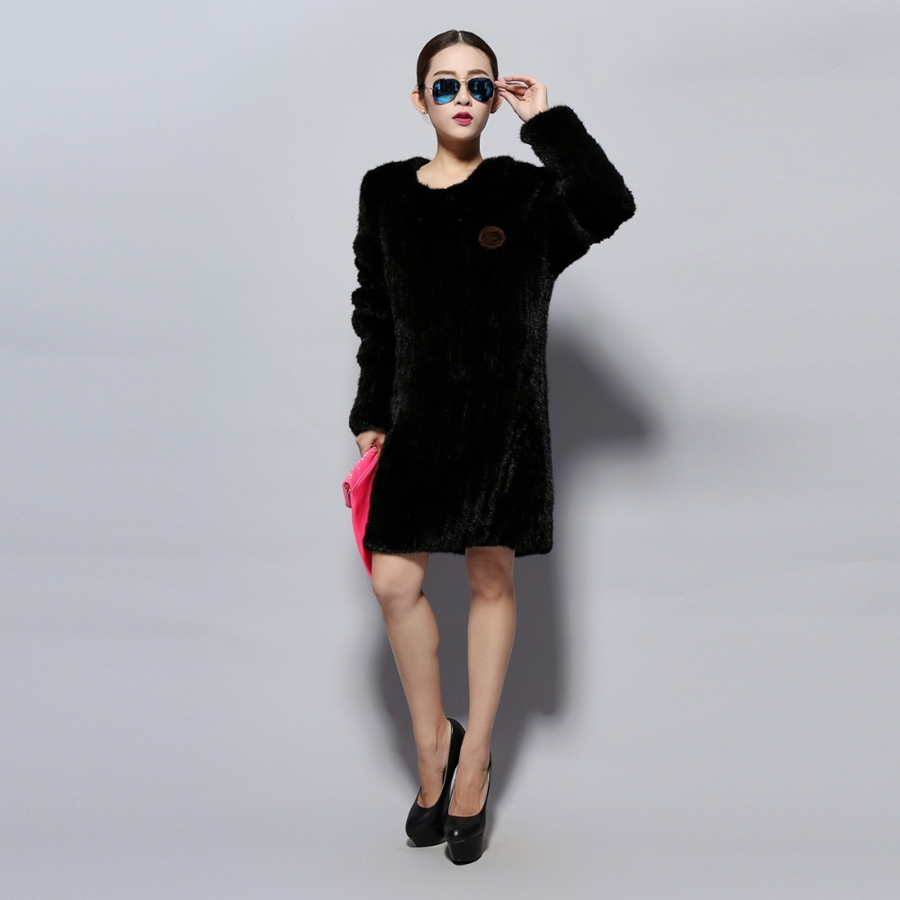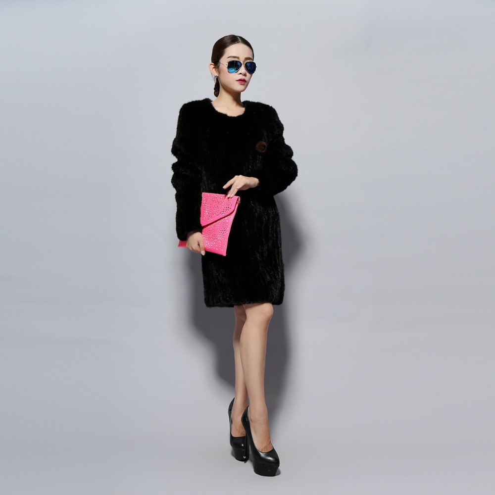 Knitted Mink Fur Coat Female Elastic Free Size Natural Fur Women's Winter Coats