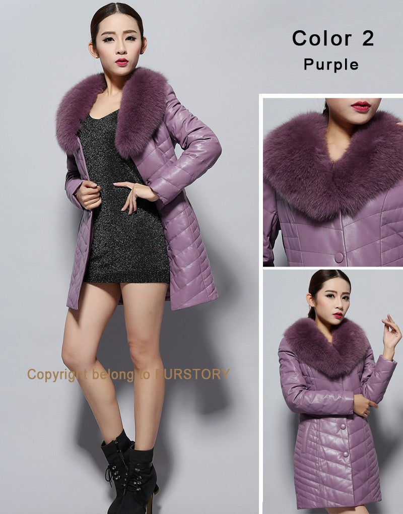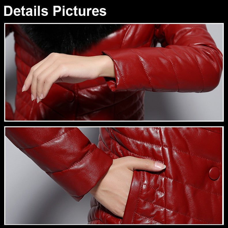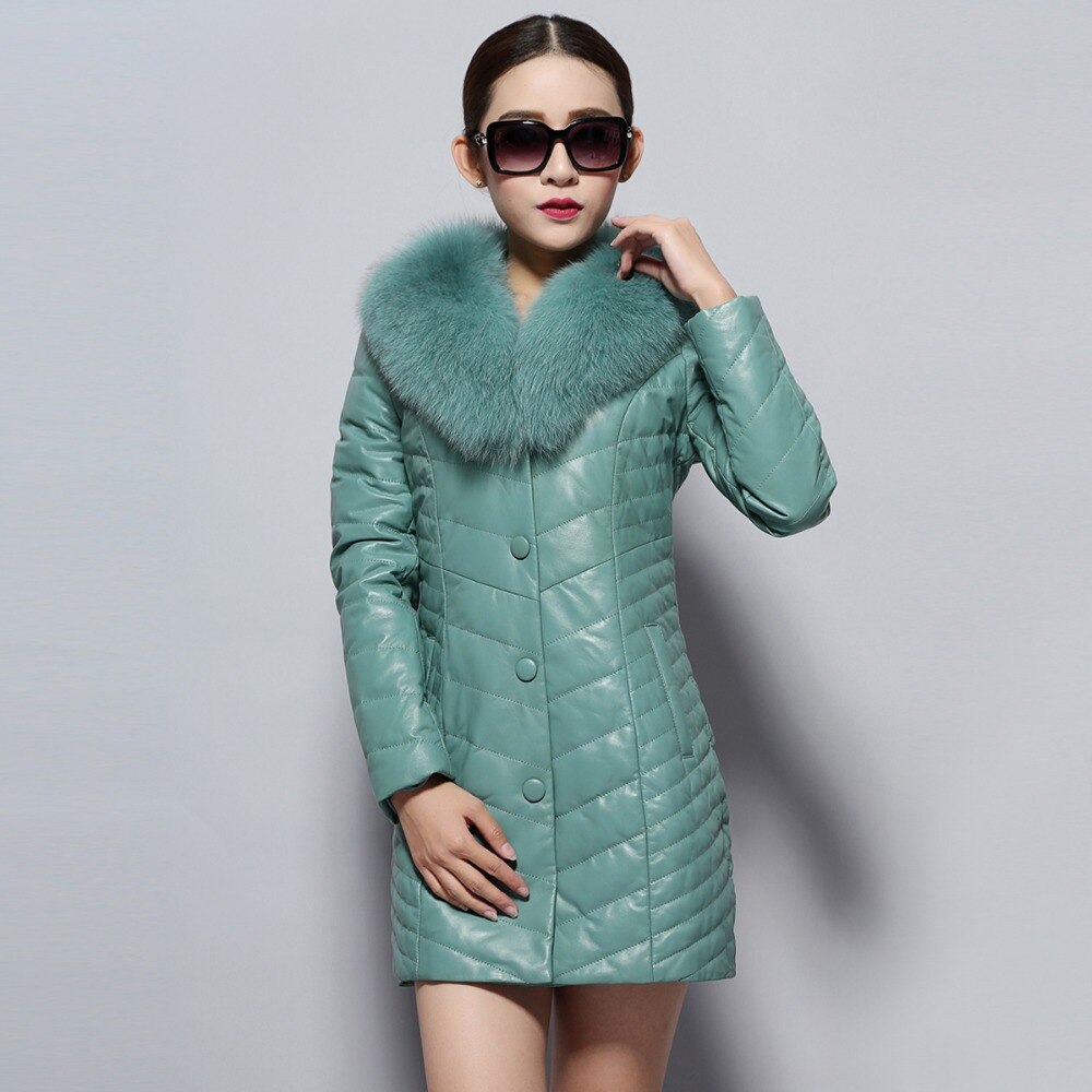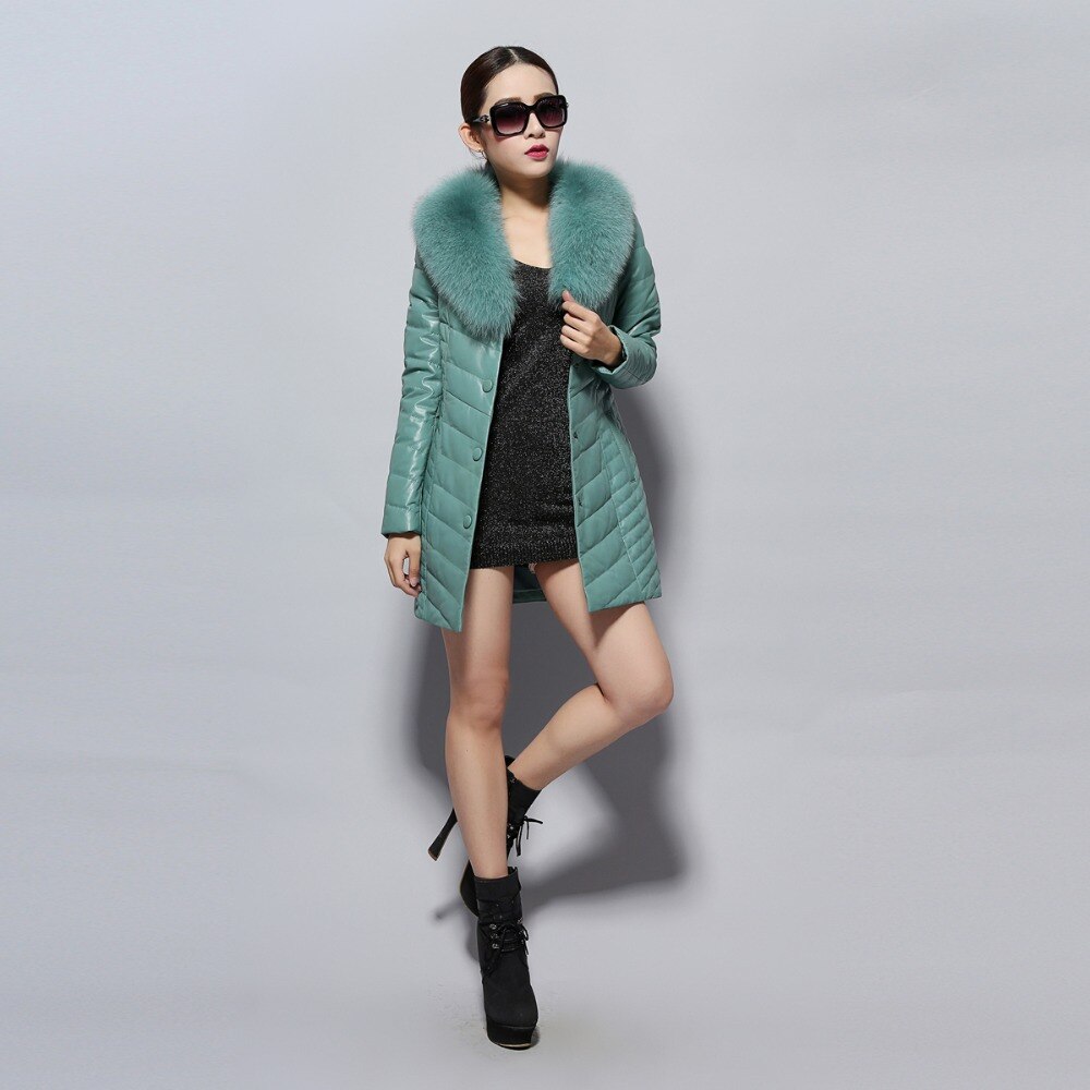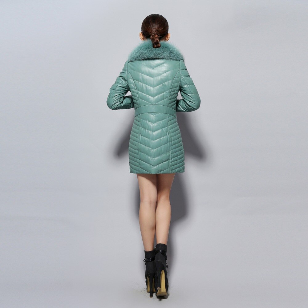Genuine Leather Coat Female with Real Fox Fur Collar Outwear Winter Women's Down Coat