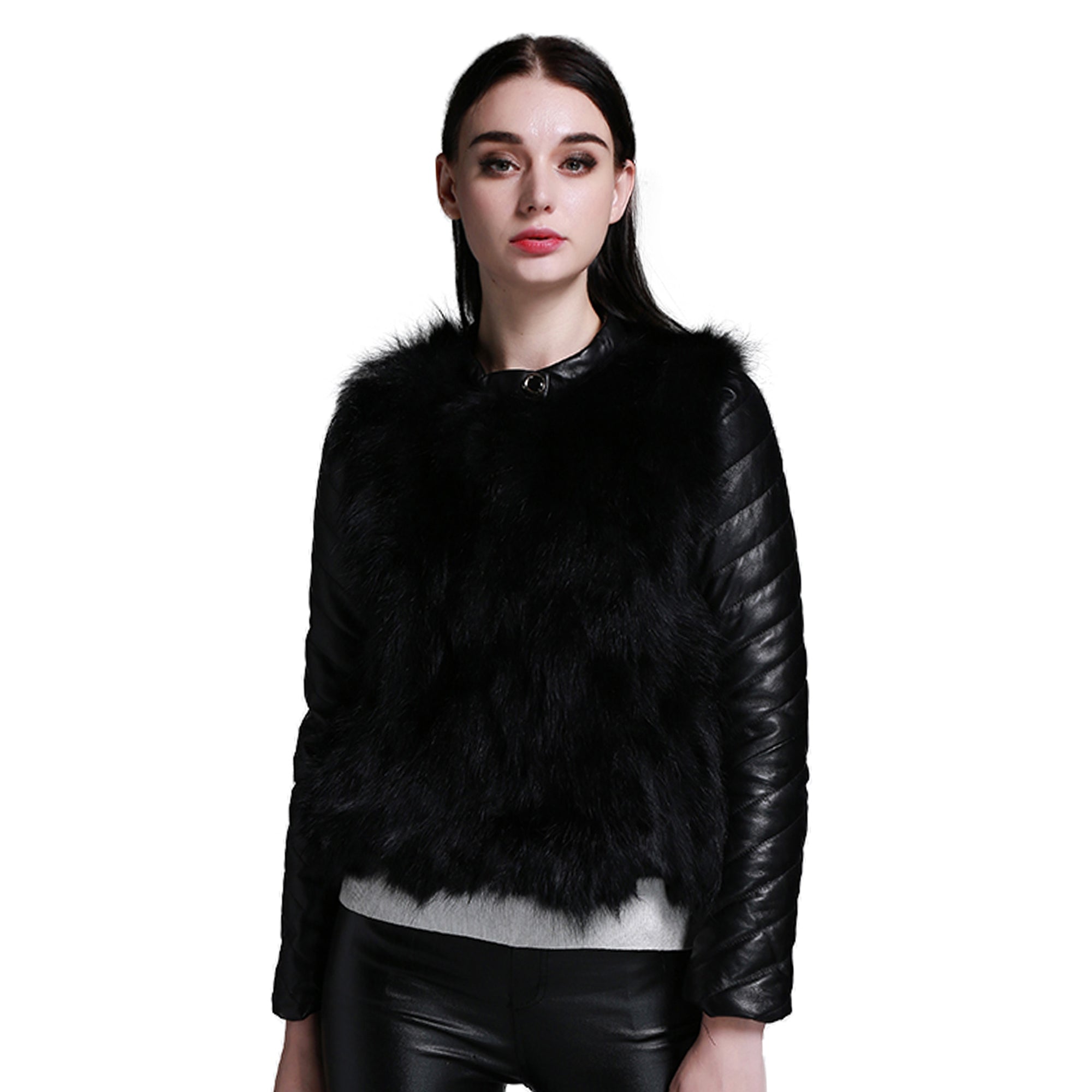 Materials:Raccoon fur + sheep leather sleeve with down stuffing