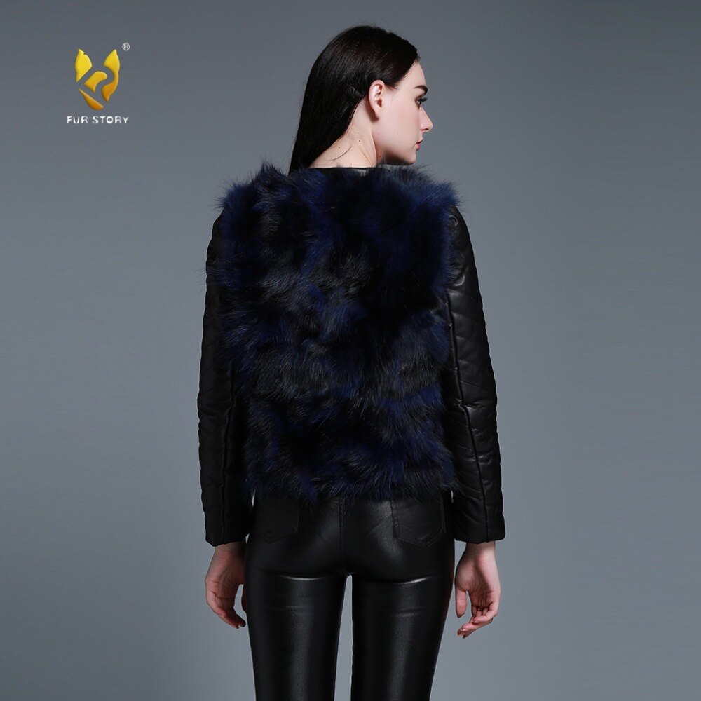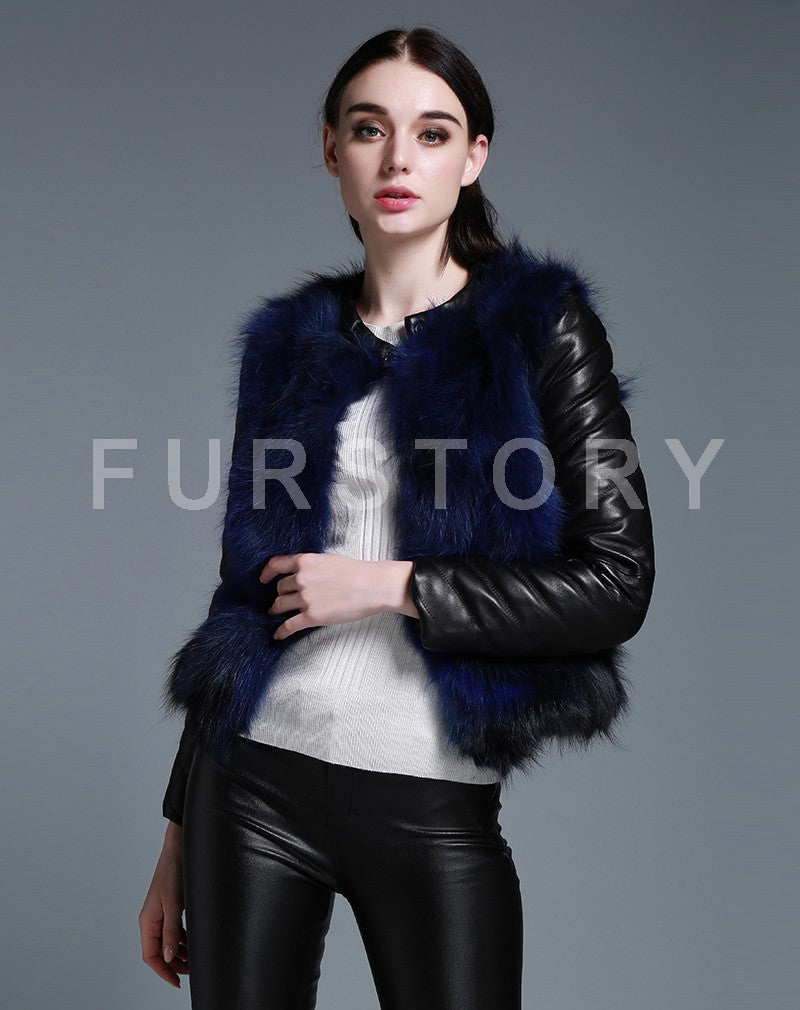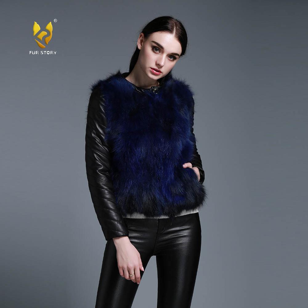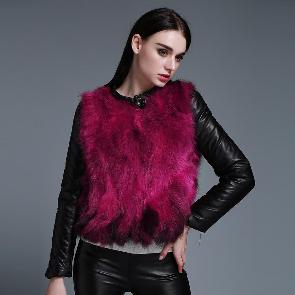 Winter Women's Raccoon fur Jacket with Genuine Sheep leather Sleeve 151220