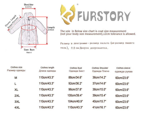 The bust size in below size chart is coat bust size(not your body bust size), please make sure you will choose the coat at least 4 cm larger than your body chest size you measured. For example, if your body bust size is 92cm, you better choose bust size 96cm of the coat.
