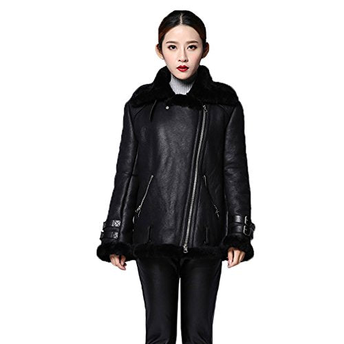 fur story 151248 Women's Real Double-Faced Fur and Leather Coat Turn Down Collar