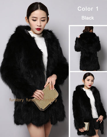 Natural Raccoon Fur Coat Women's Real Fur Jacket Long Sleeve Winter Warm Outwear 151256