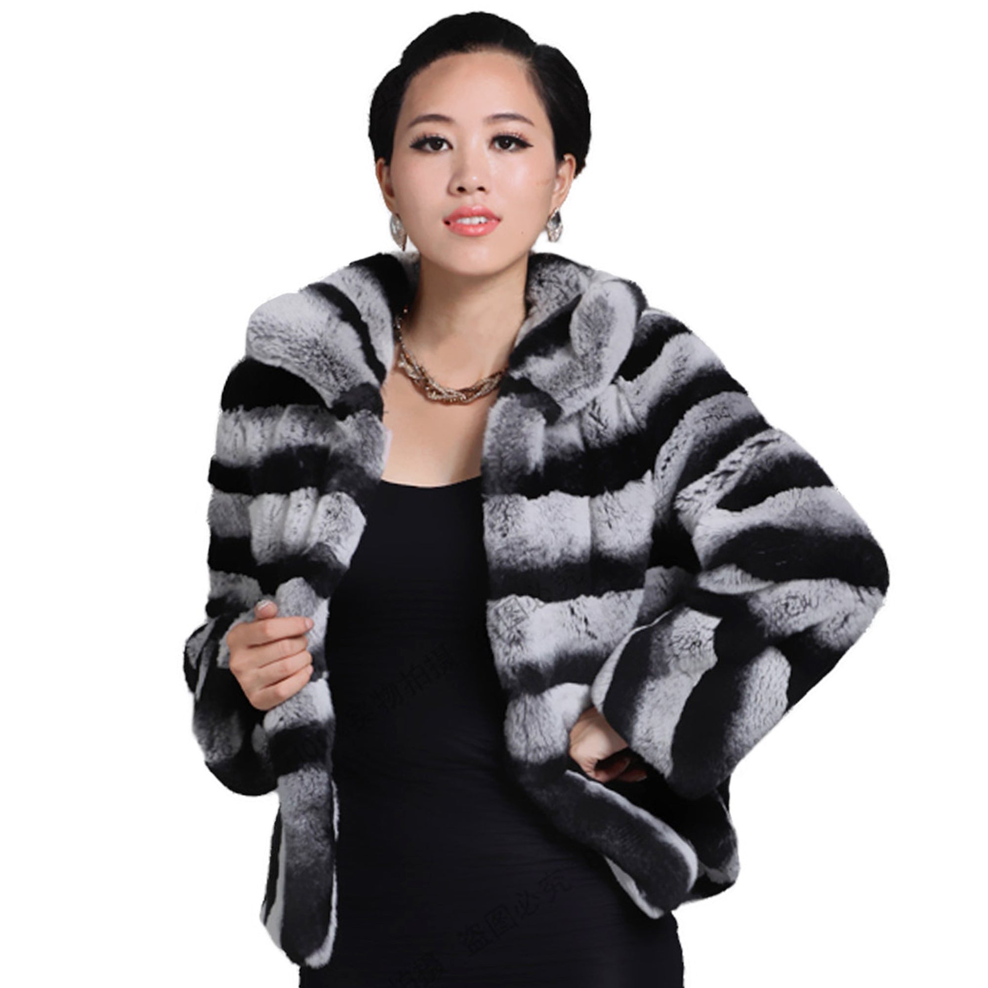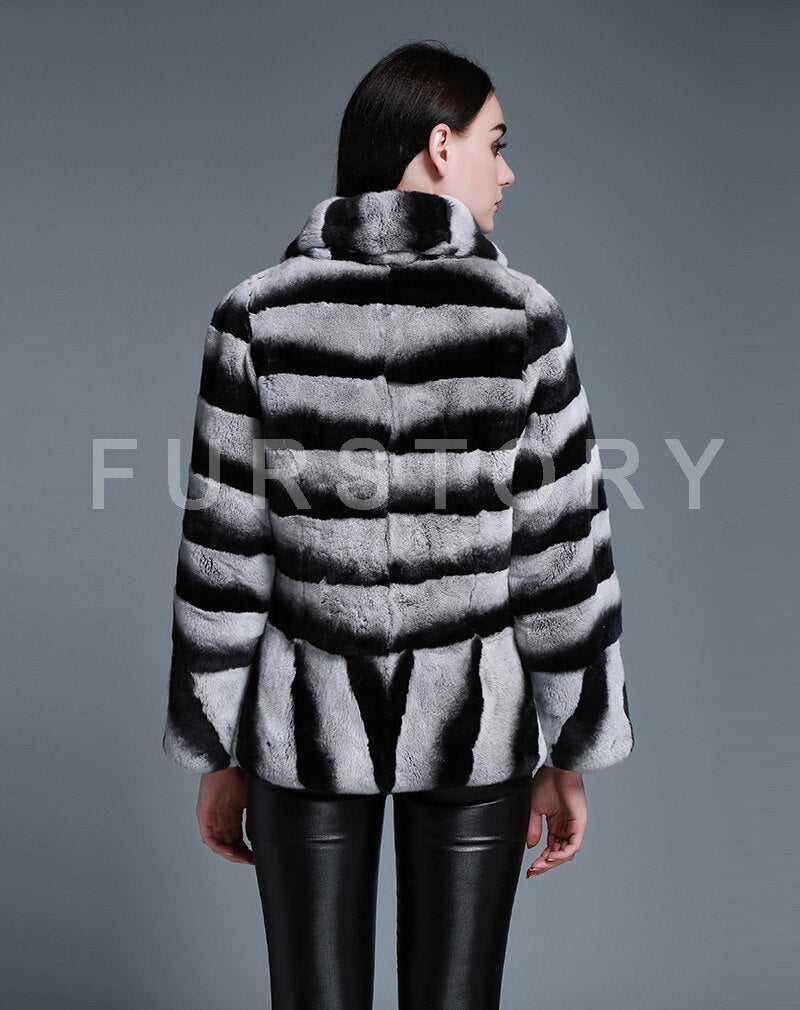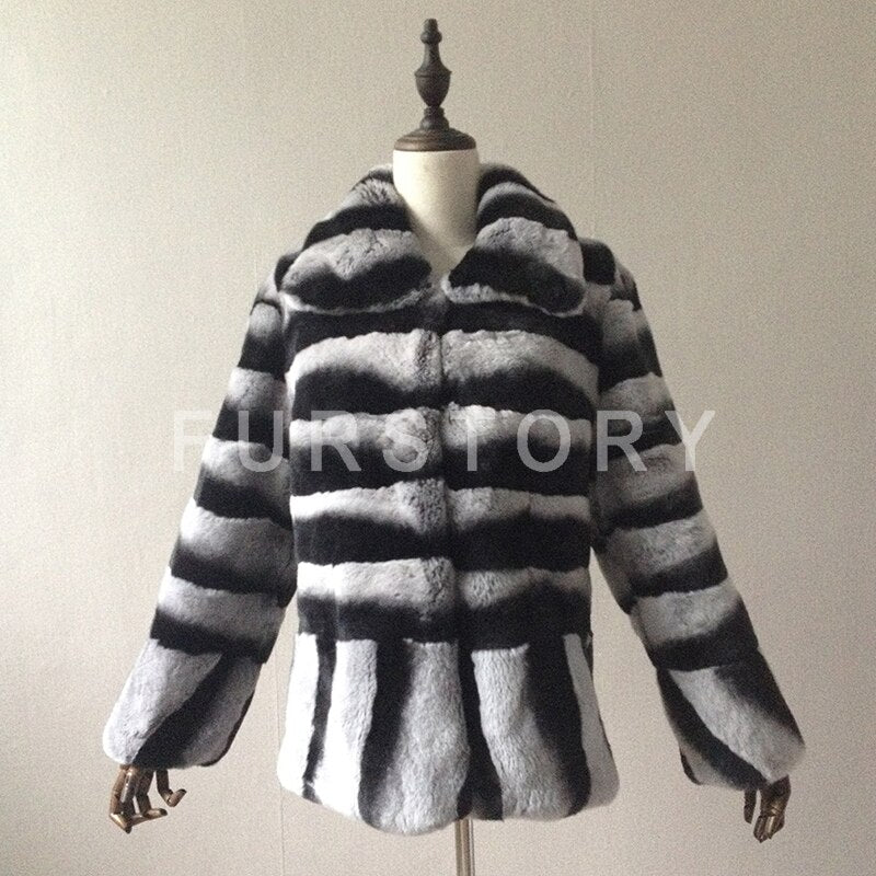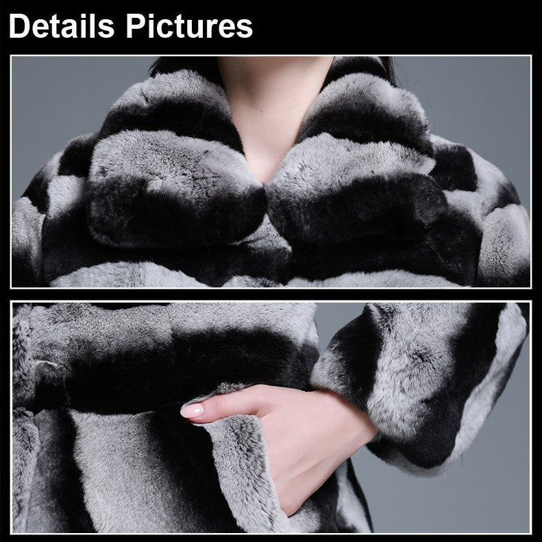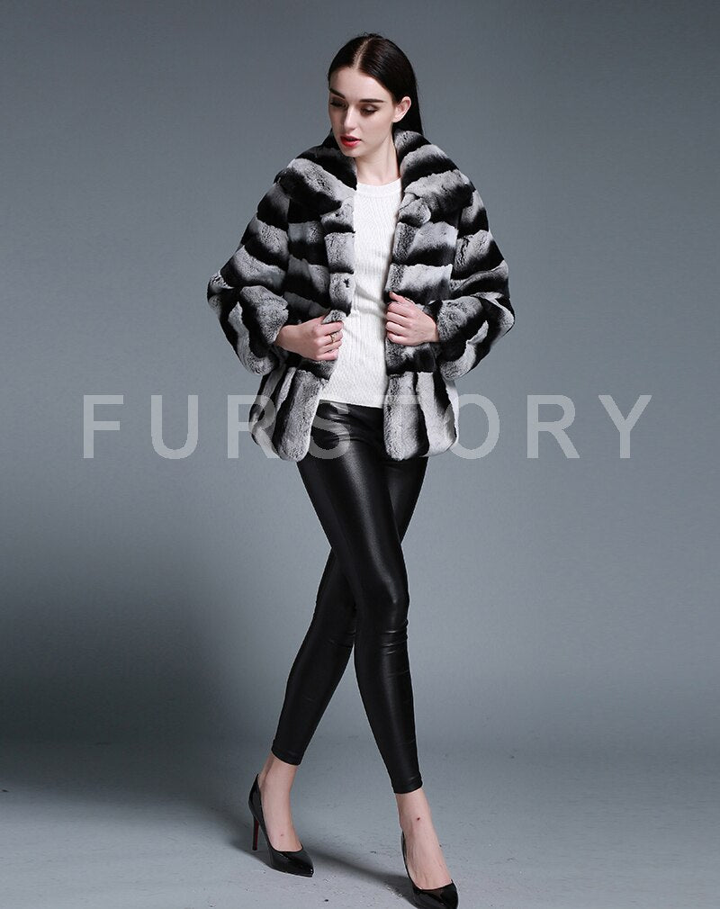 Women's Genuine Rabbit Fur Coat with Big Turn Down Collar Chinchilla Color 15190