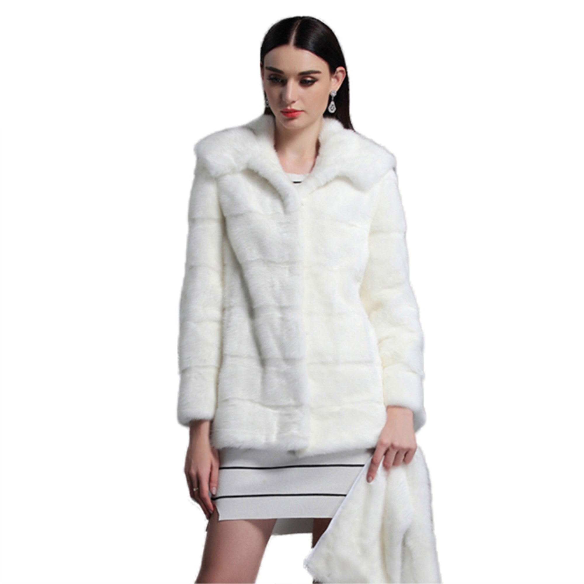 Women's Genuine Mink Fur Coat Women with Hood Plus Size Fur Overcoat 161151