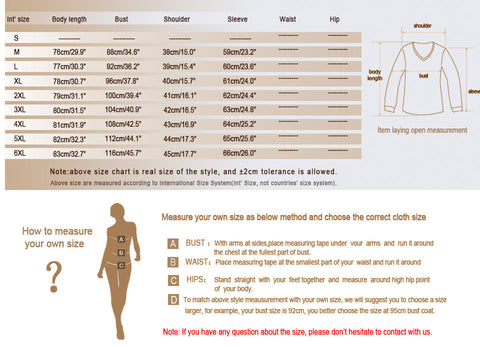 Real measurement of the style (the same as above chart 1, for non-English Countries), please always buy the goods according to the below and your real body size.