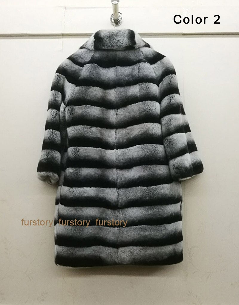 Women's Rabbit Fur Coat Chinchilla Color Turn-down Collar Overcoat 16190