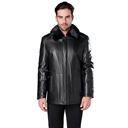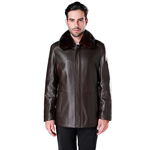 Fur Story Men's Genuine Sheep Leather Coat Jacket Mink Fur Lining and Collar Full Sleeve Turn Down Collar