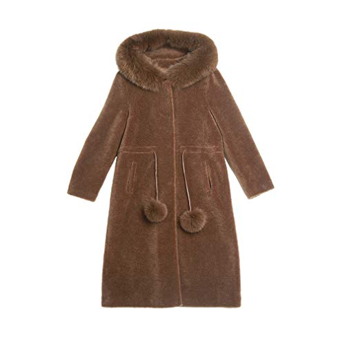 fur story Women's Fur Coat with Hood and Pompom Long Fur Jacket for Winter 18133