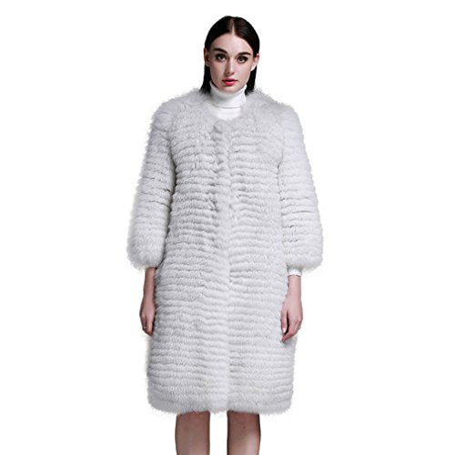 Fur Story Women's Long Fur Coat with Real Fox Fur Thick Warm Coat 3/4 Sleeve O Neck