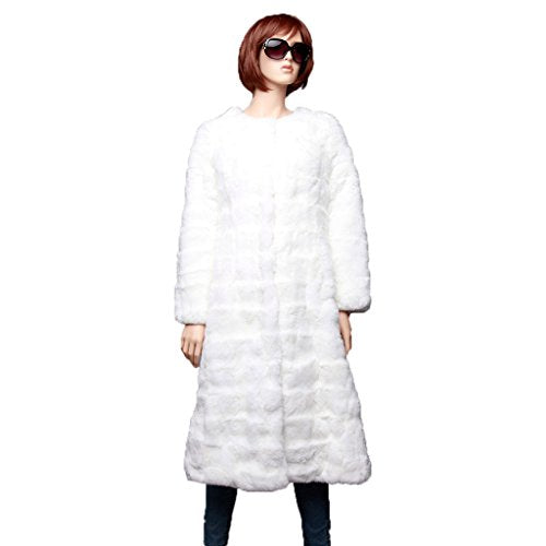 fur story Women's Long Fur Coat with Real Rabbit Fur Thick Warm Coat Full Sleeve O Neck
