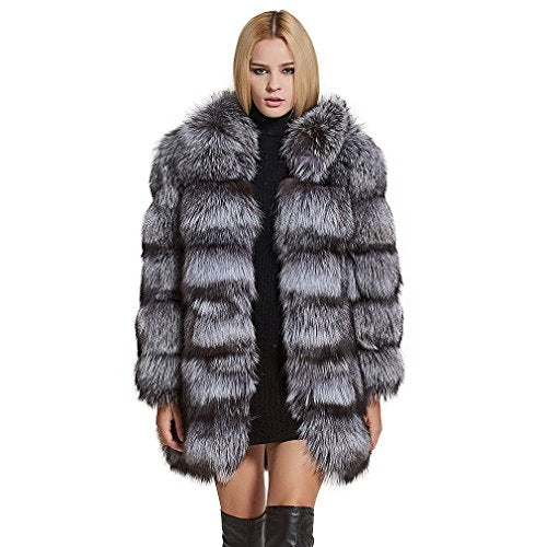 fur story Women's Long Genuine Fox Fur Coat with Hood Thick Warm Coat Full Sleeve O Neck