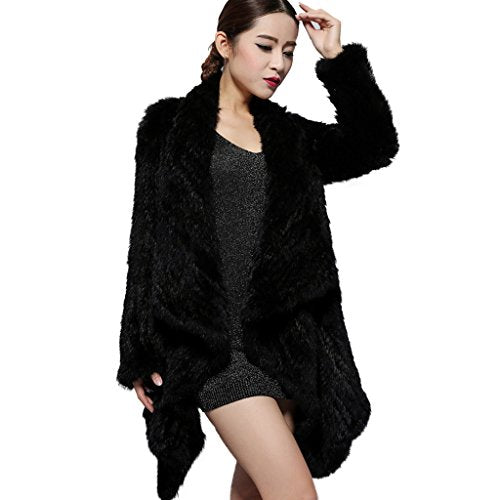Fur Story Women's Long Knitted Real Rabbit Fur Coat