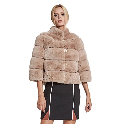 fur story Women's Long Real Rex Rabbit Fur Coat with Sheep Leather Warm Coat Full Sleeve Stand up Collar