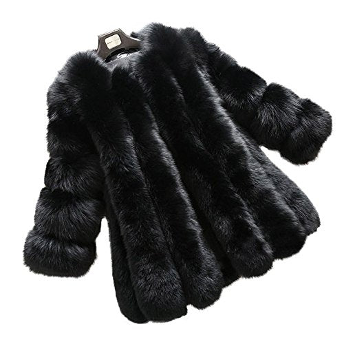 fur story Women's Real Fox Coat 3/4 Sleeve Leather Joint