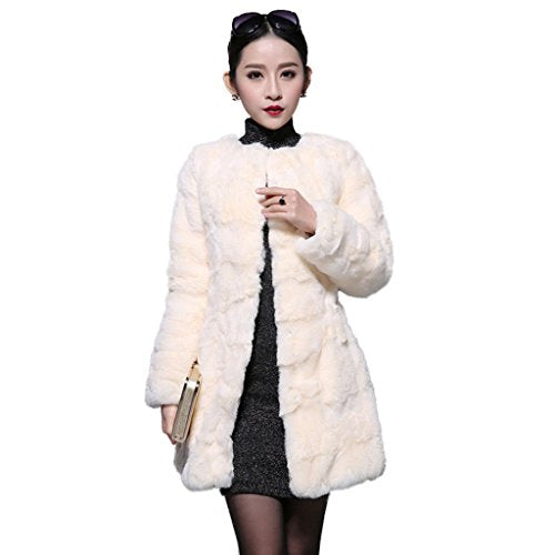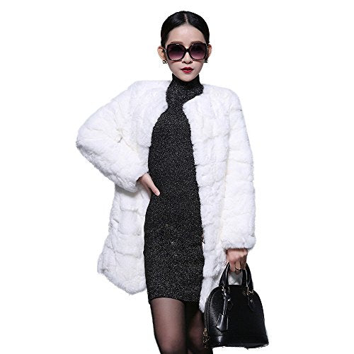 Fur Story Women's Real Rabbit Fur Coat Long Length with Full Sleeve