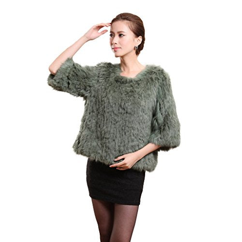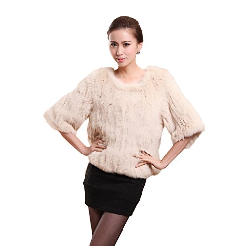 Fur Story Women's Short Knitted Real Rabbit Fur Coat Pullover