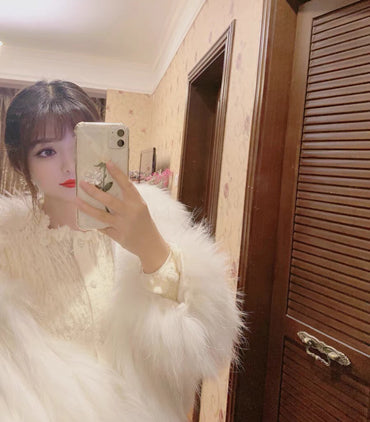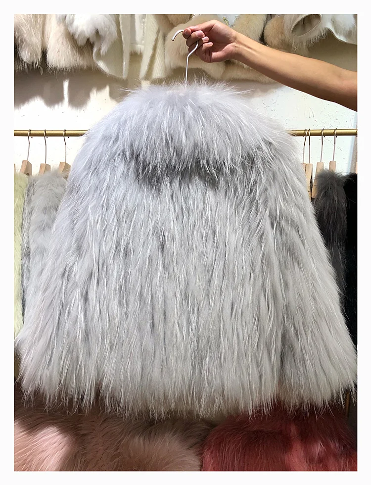 Raccoon Dog Fur Woven Fur Coat Women's Short Small Lapel Winter 2021 Fox Fur Fur Fur Coat Strip FS21119