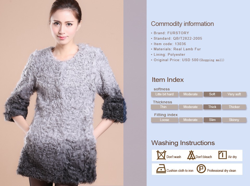 Real Lamb Fur Coat Jacket Overcoat Womens' Dress Ladies' Dress Winter Coat  Garment Top Dress Beatiful Color Fur Story FS13036