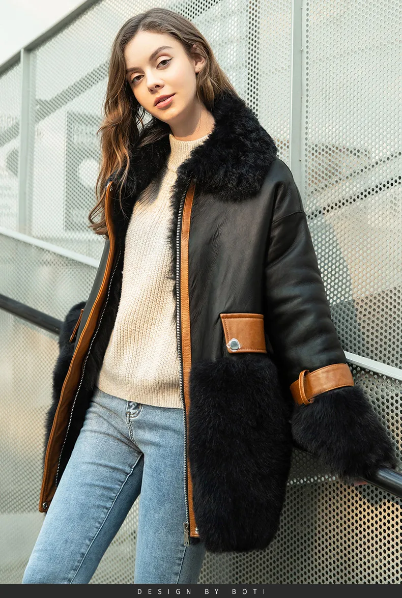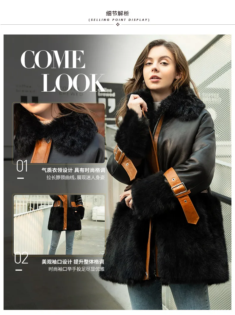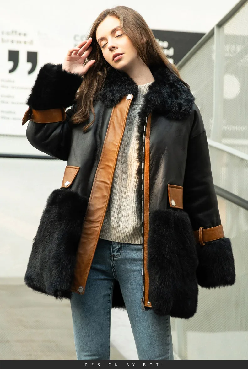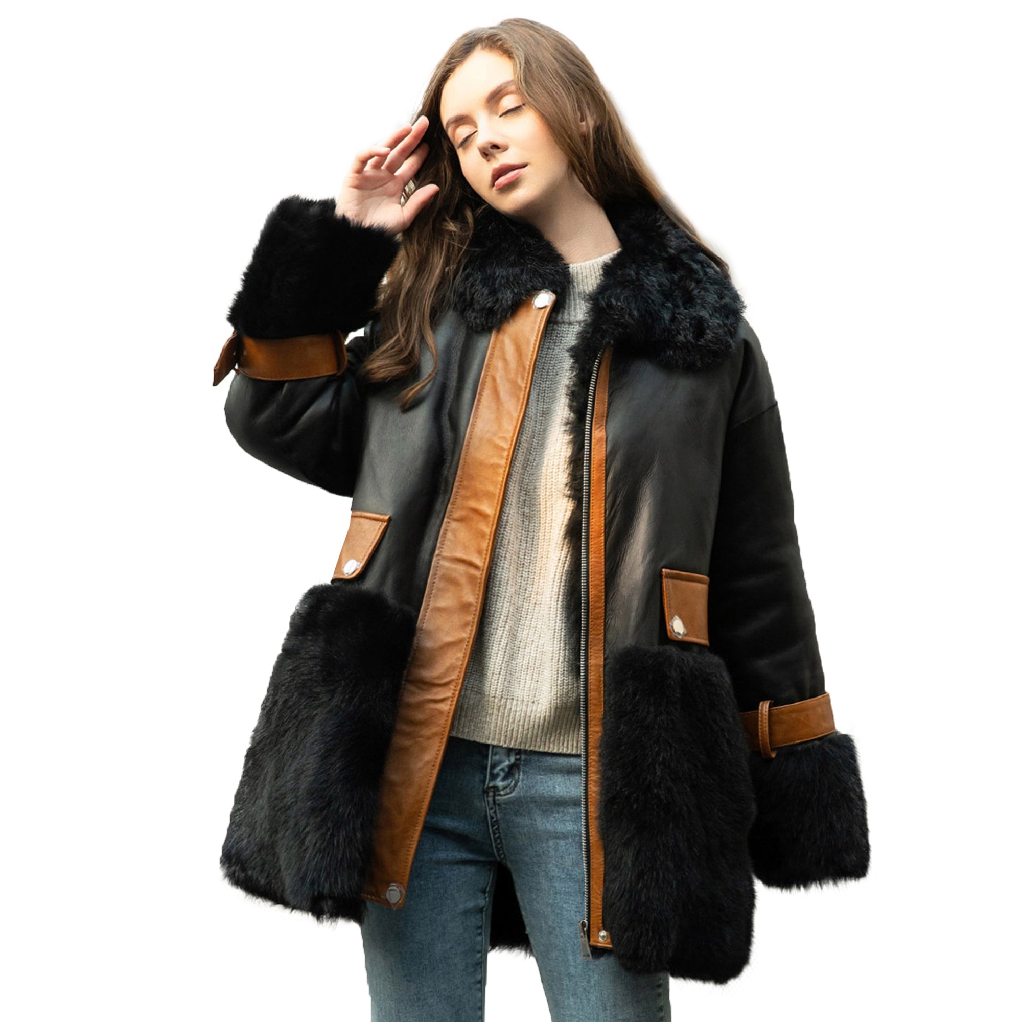 FS21135 Winter Women's Fur Coat Loose Casual Sheepskin Women's Coat
