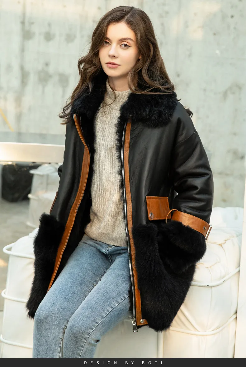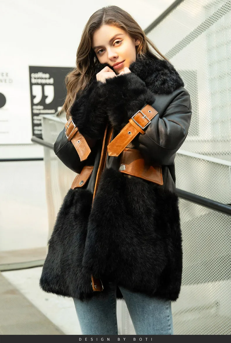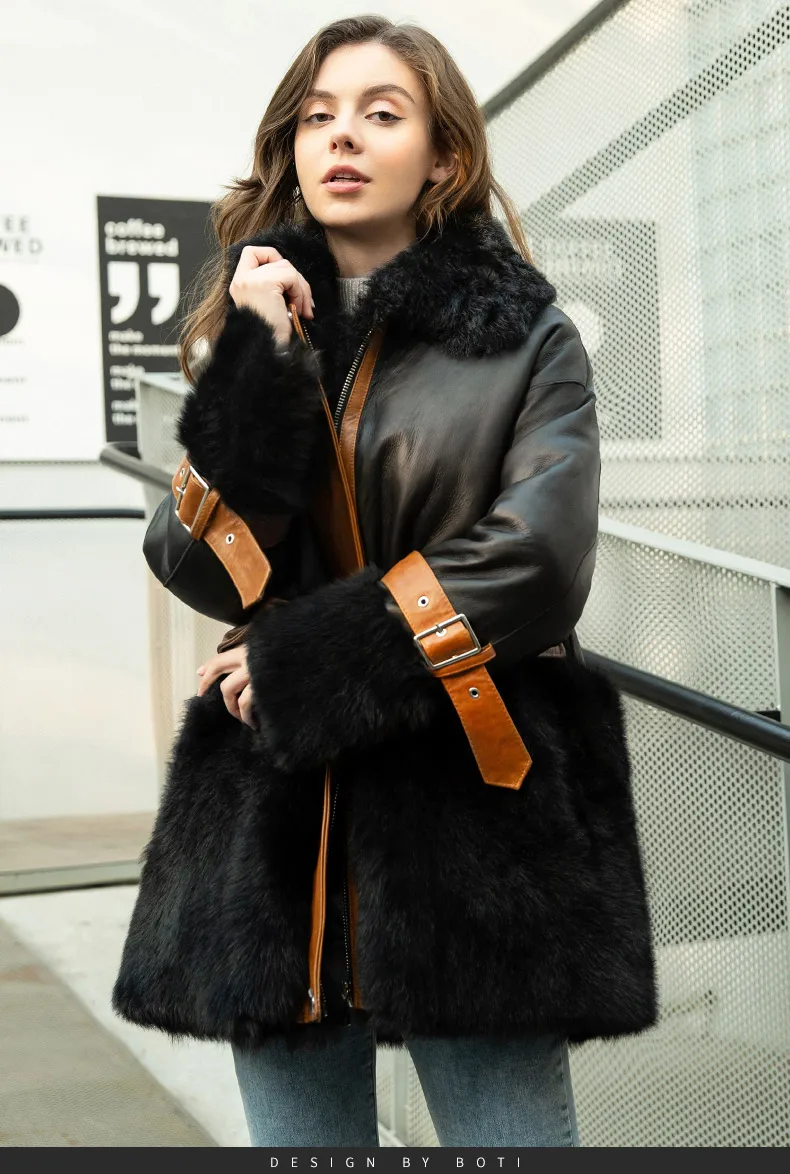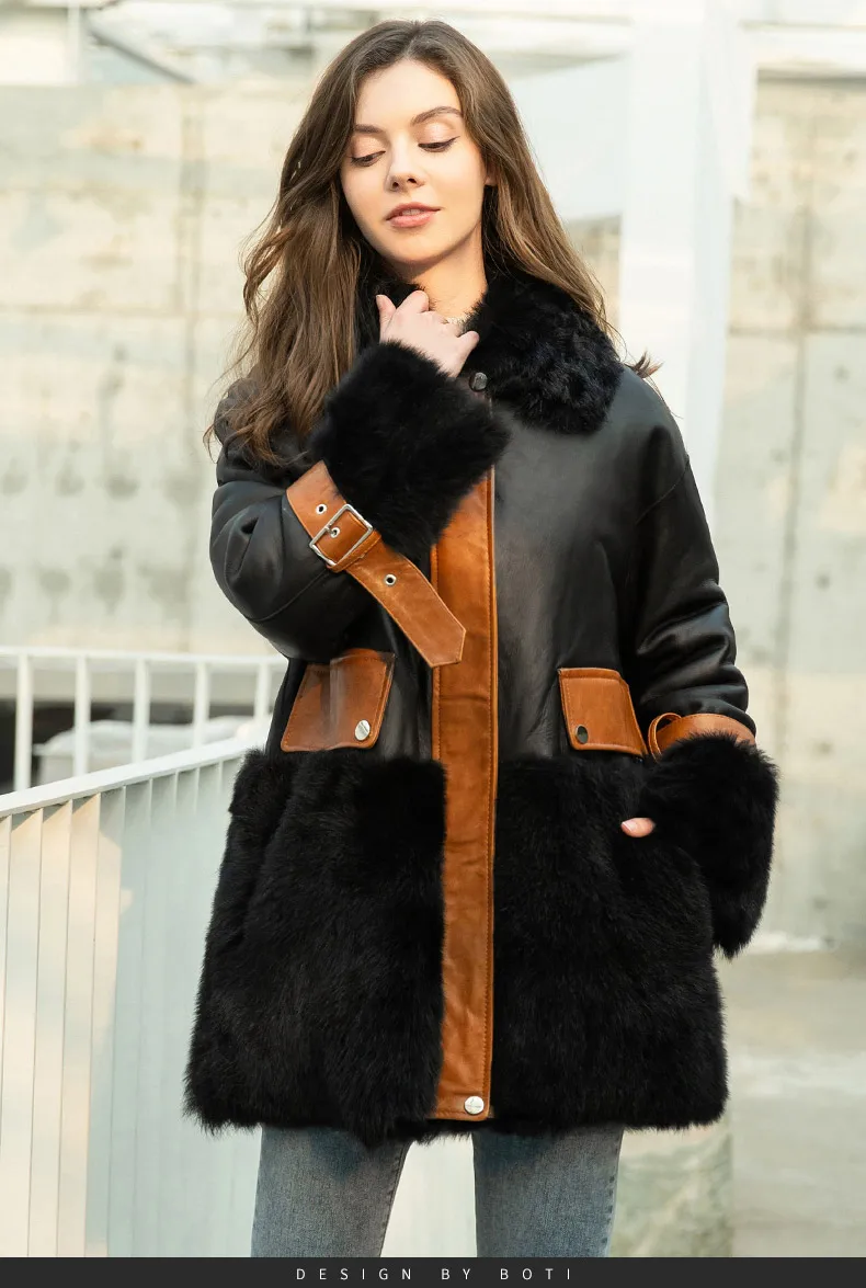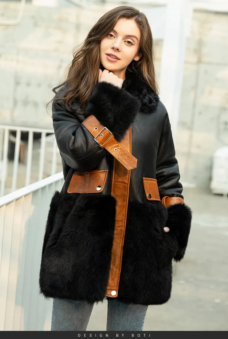 FS21135 Winter Women's Fur Coat Loose Casual Sheepskin Women's Coat